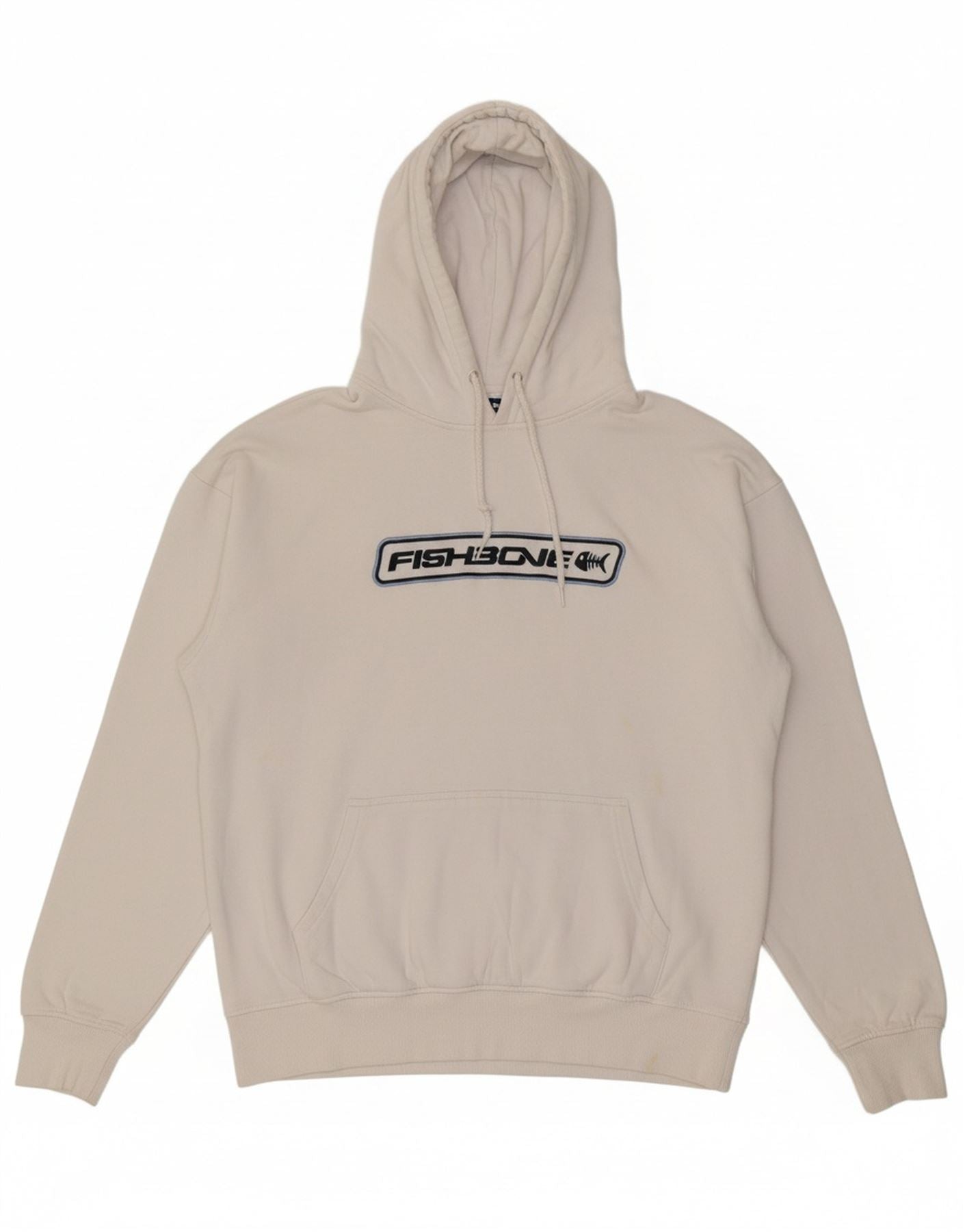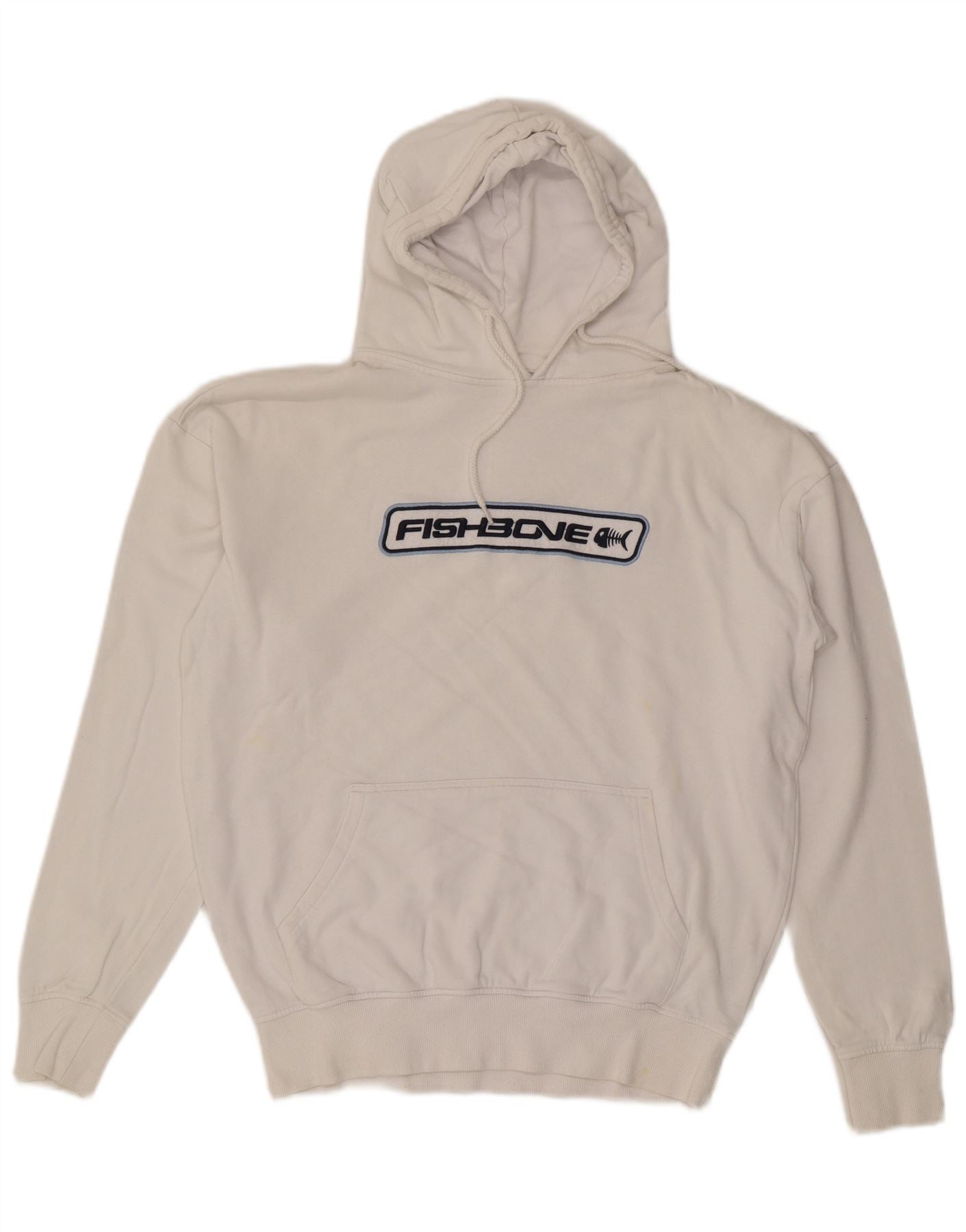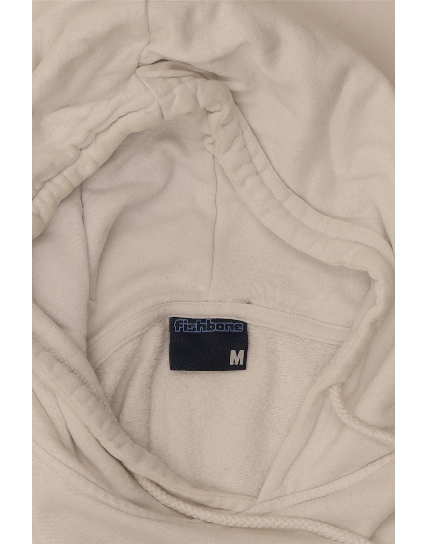 FISHBONE Mens Graphic Hoodie Jumper Medium White Cotton