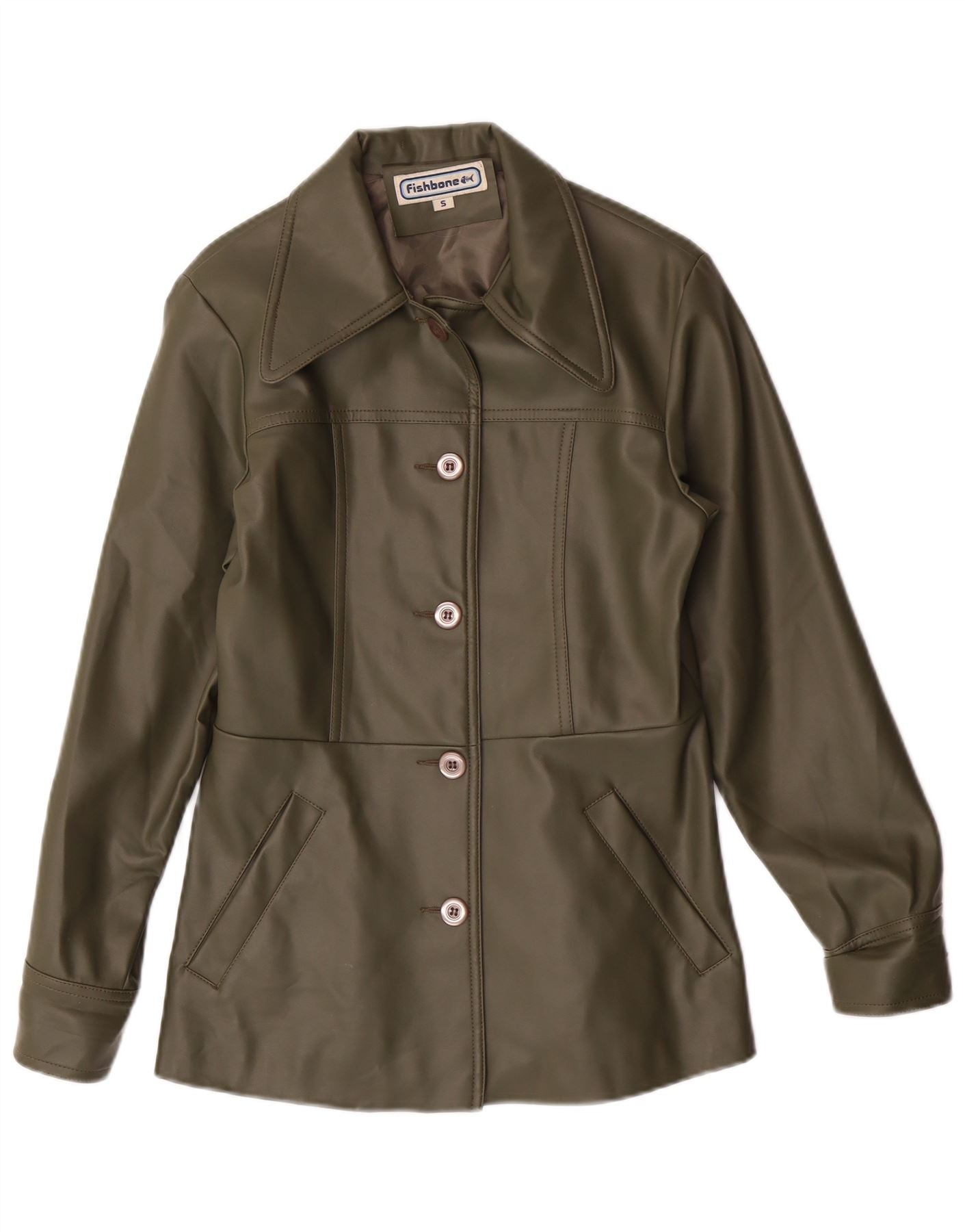 Женская куртка FISHBONE из искусственной кожи UK 10, маленькая, зеленая, из полиуретана