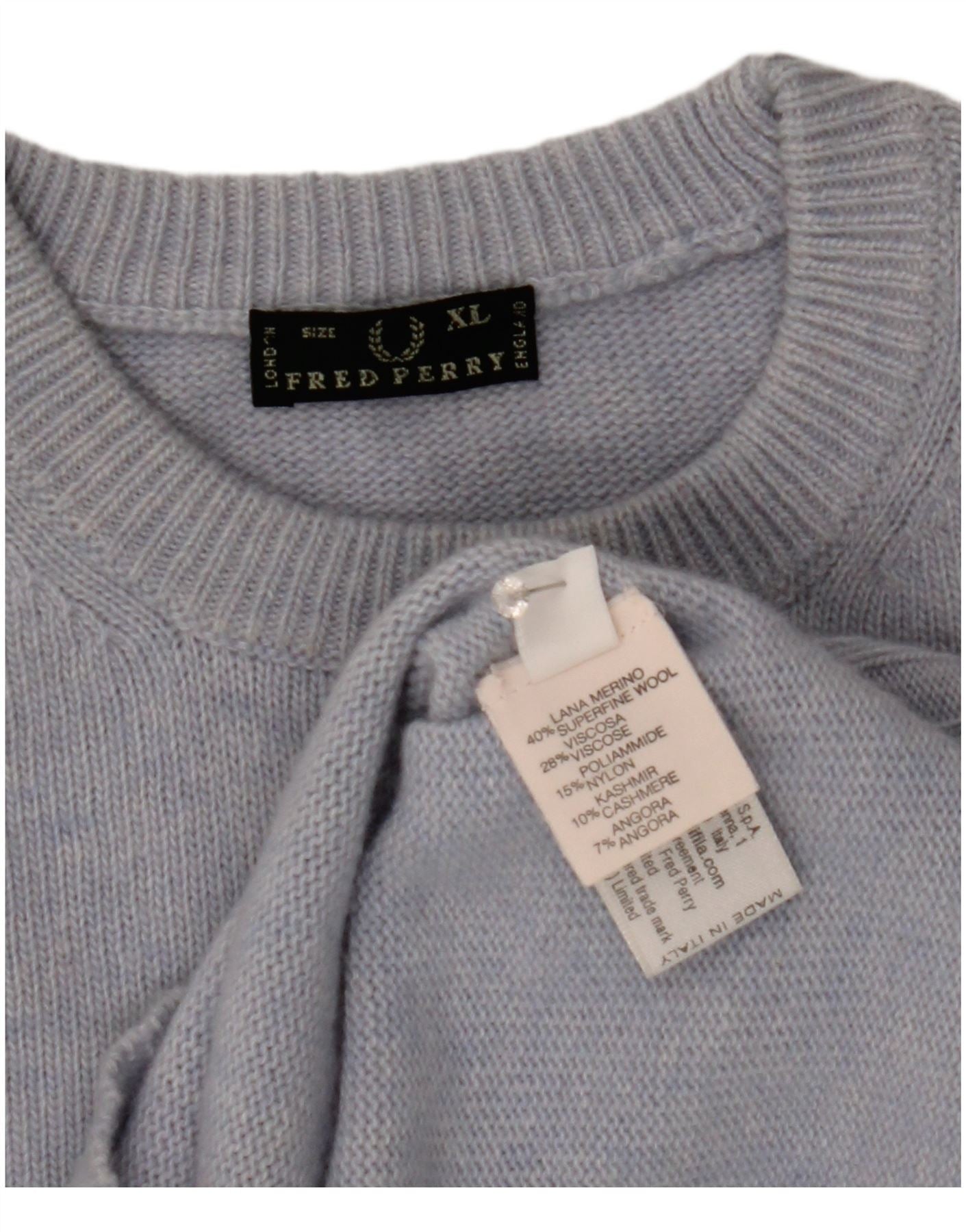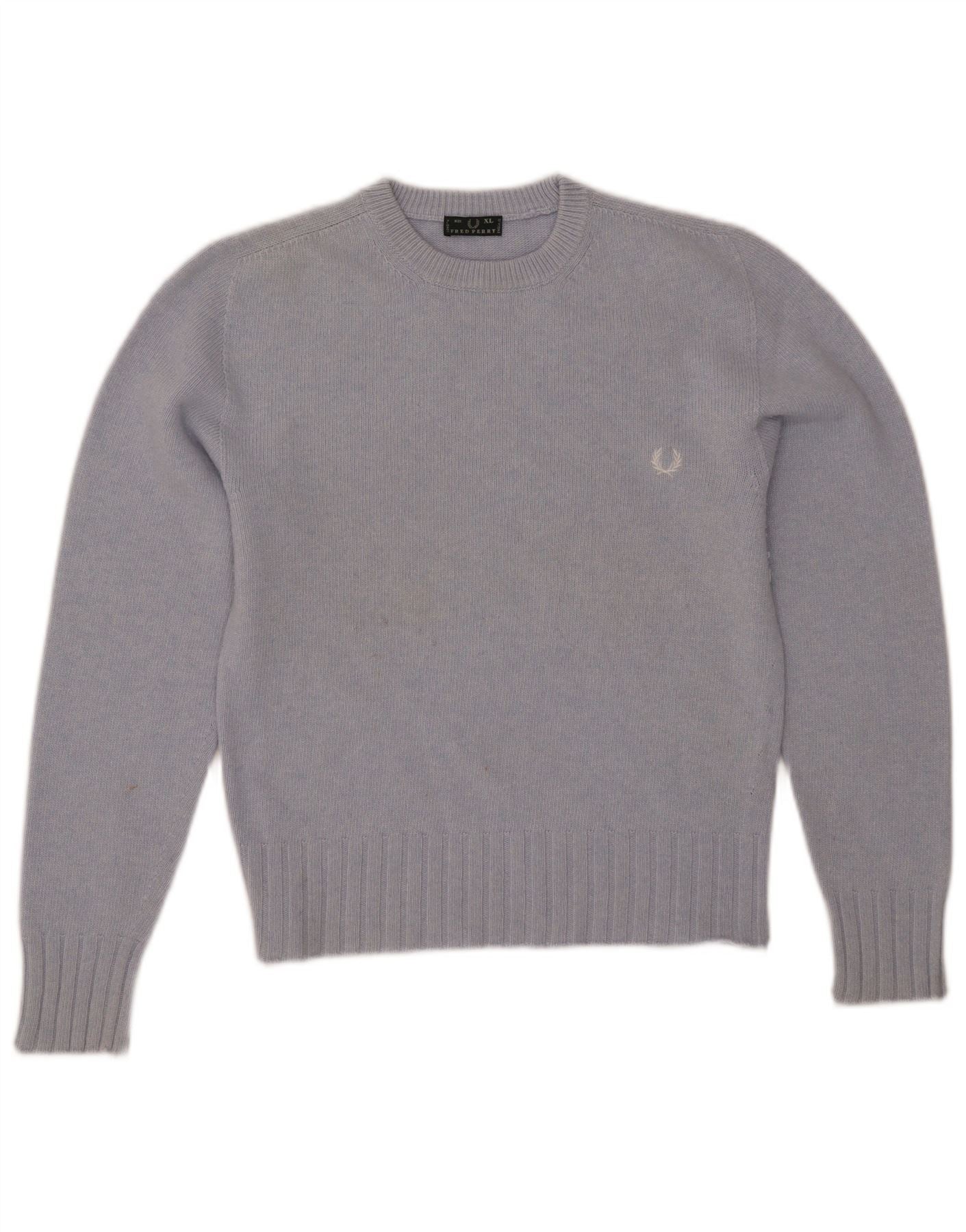 FRED PERRY Girls Crew Neck Jumper Sweater 14-15 Years XL Blue Merino Wool