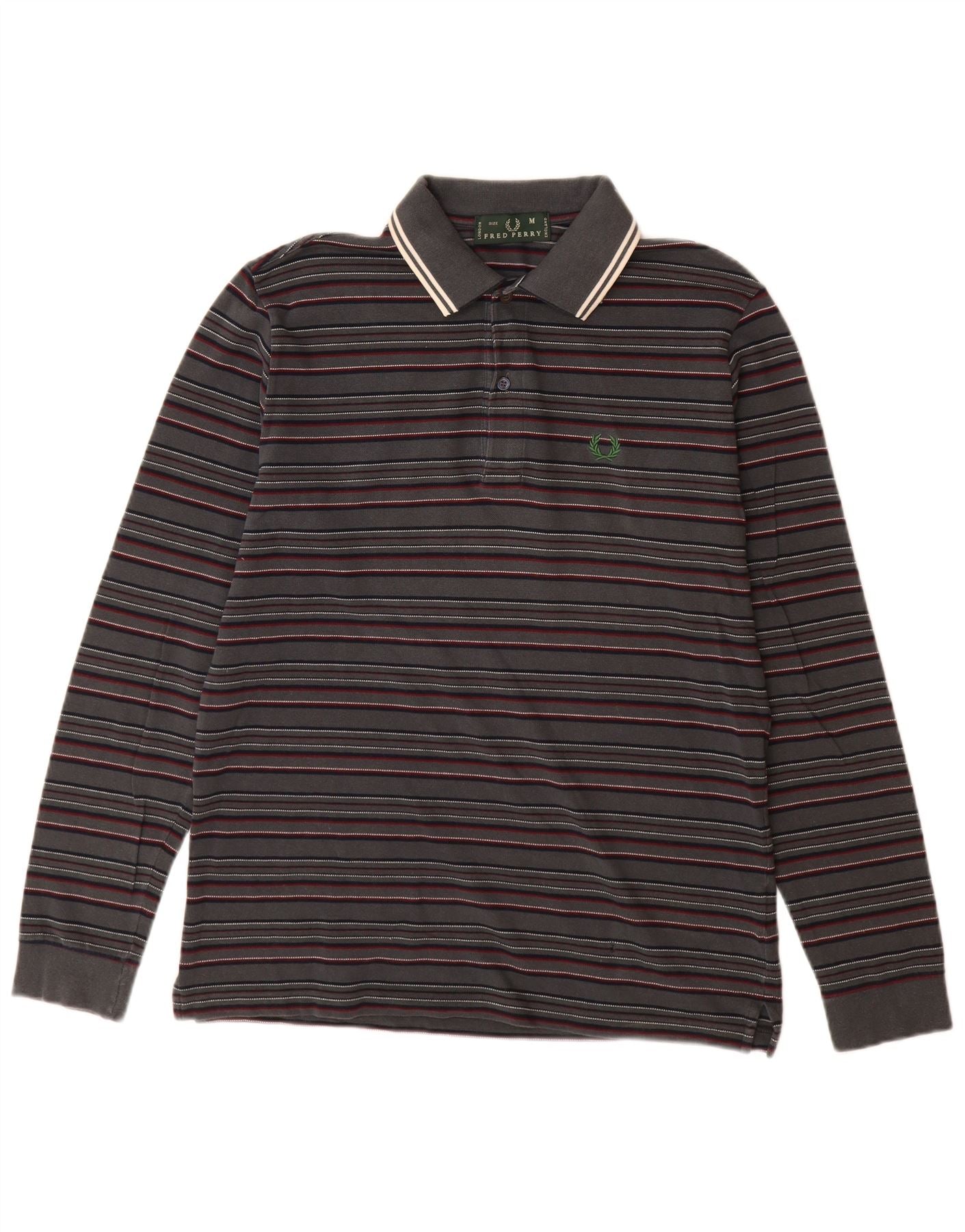 FRED PERRY Мужская рубашка поло с длинным рукавом, хлопковая серая полоска среднего размера
