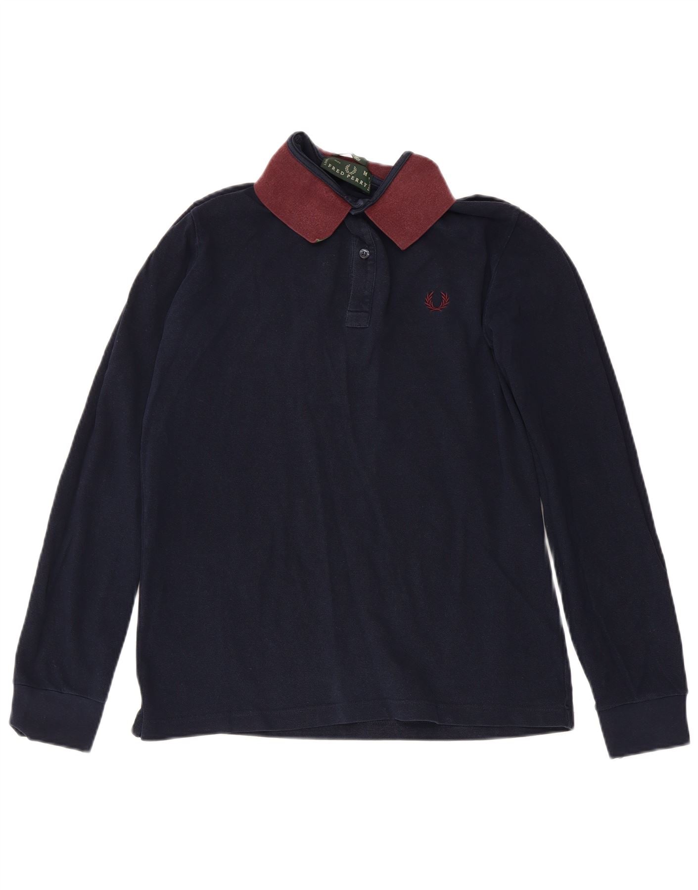 Мужская рубашка-поло с длинным рукавом Fred Perry, темно-синяя, хлопковая, среднего размера