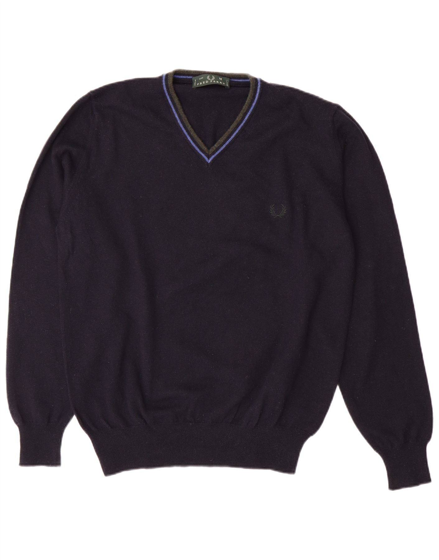Мужской джемпер с v-образным вырезом FRED PERRY, средний темно-синий шерстяной свитер