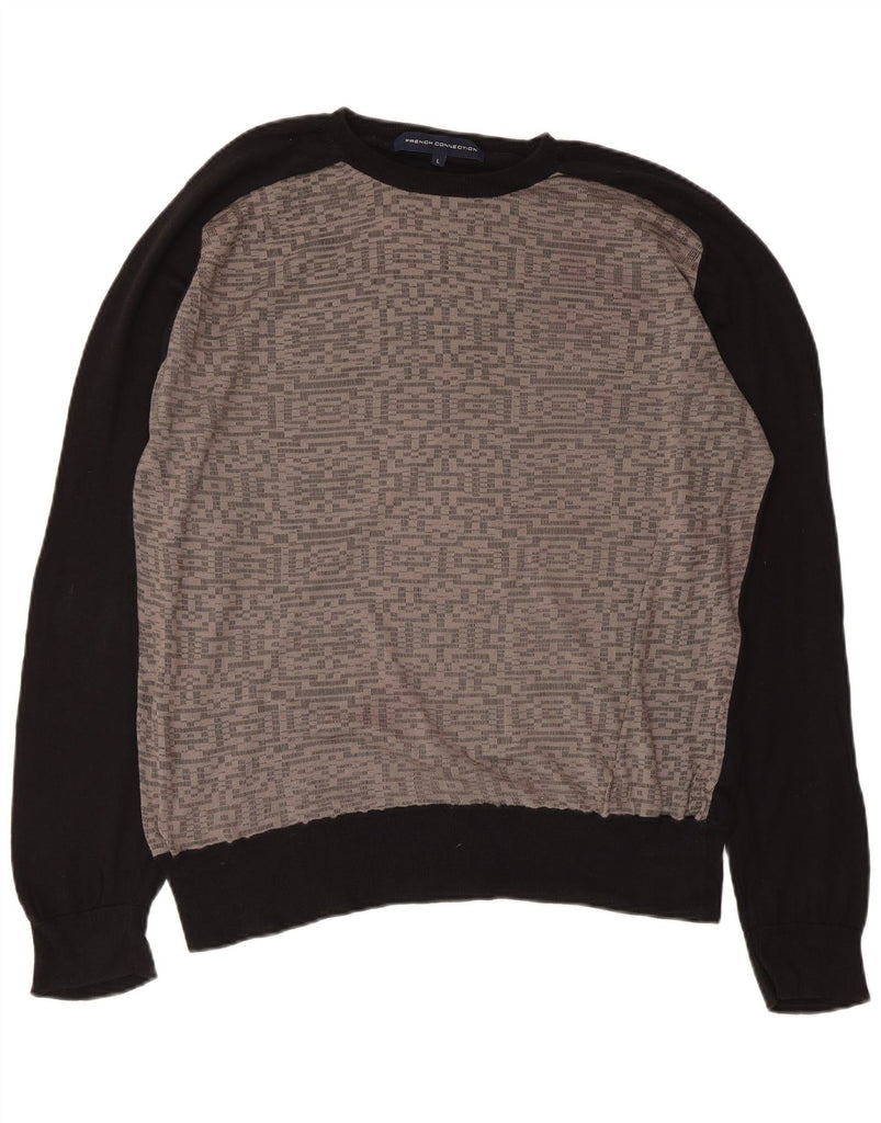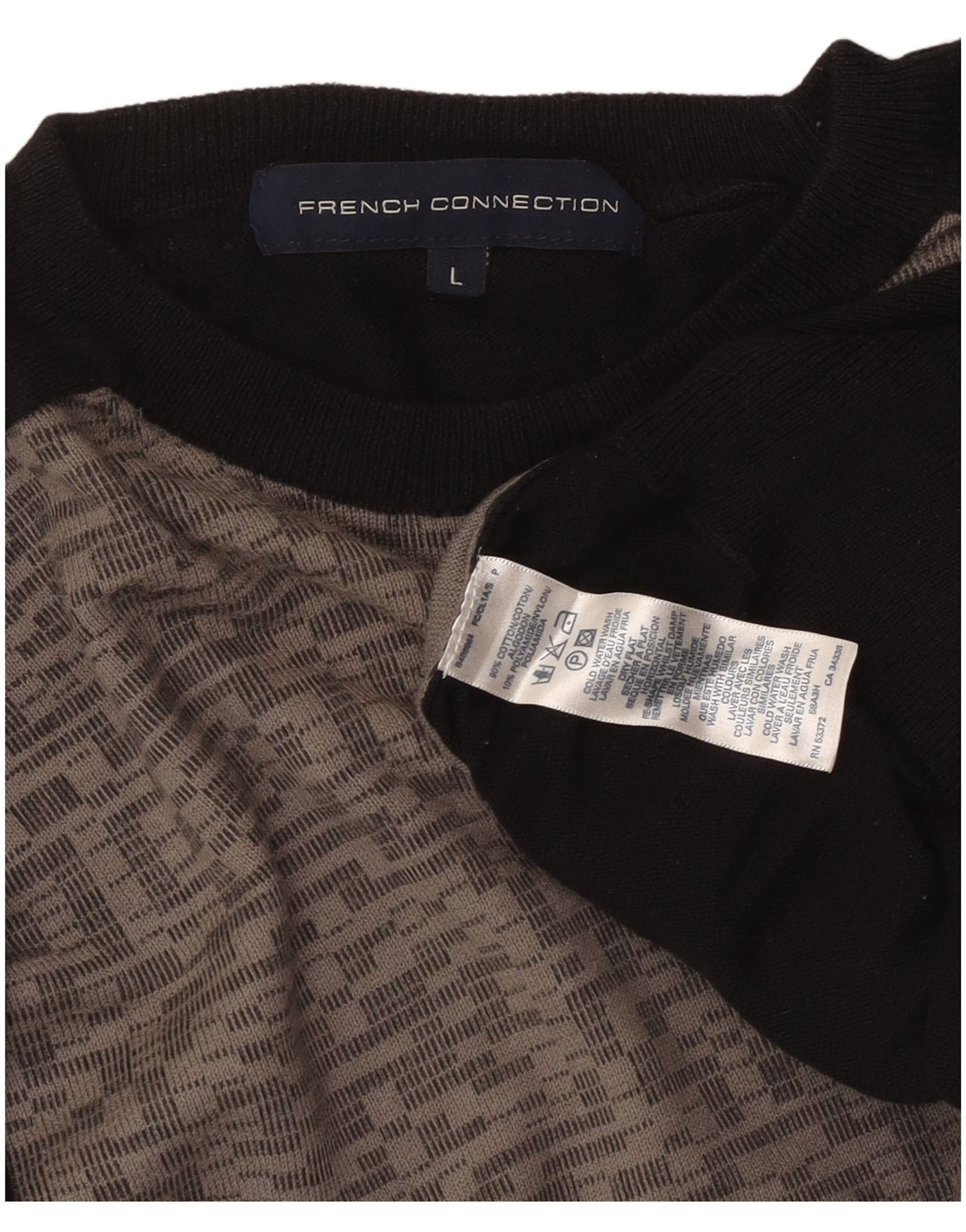 FRENCH CONNECTION Mens Boat Neck Jumper Sweater Large Black Geometric