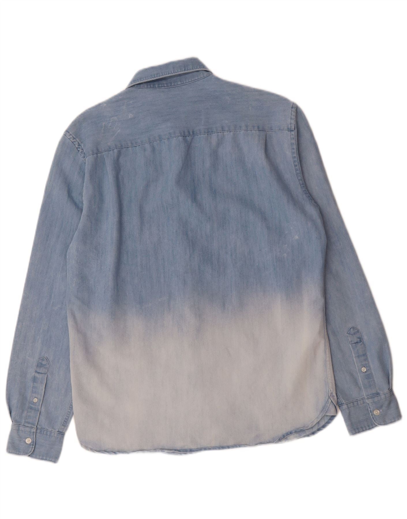 - AI Description: This French Connection mens denim shirt is crafted from blue denim, offering a robust yet comfortable feel. It features a classic collared neckline and long sleeves with buttoned cuffs. The regular fit ensures a comfortable silhouette. A distinctive colourblock and tie dye pattern adds a modern, artistic touch. Button closure and practical pockets complete the design, blending classic style with contemporary detailing.