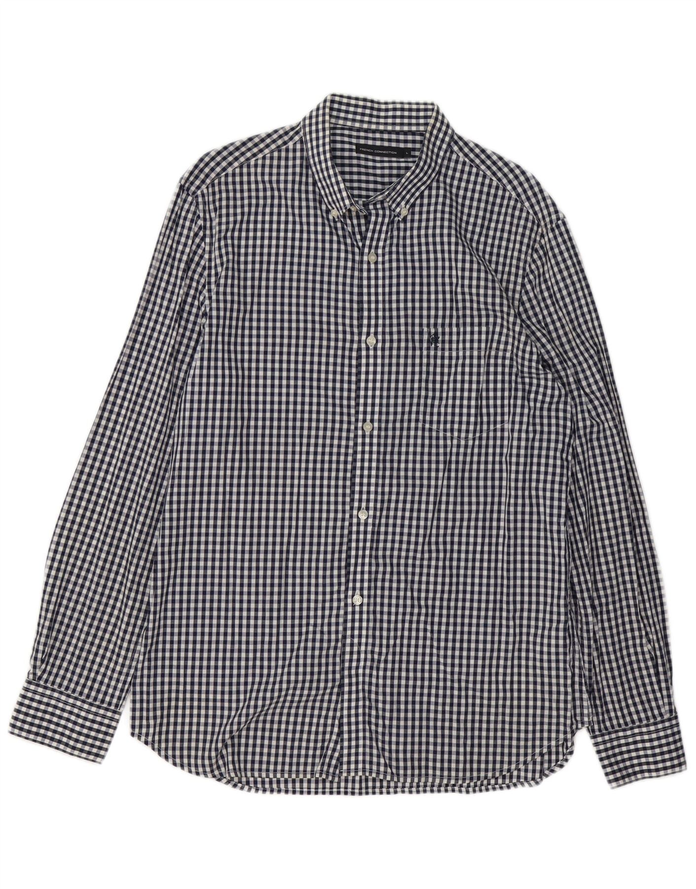 Мужская рубашка FRENCH CONNECTION, большая темно-синяя хлопковая клетка в мелкую клетку