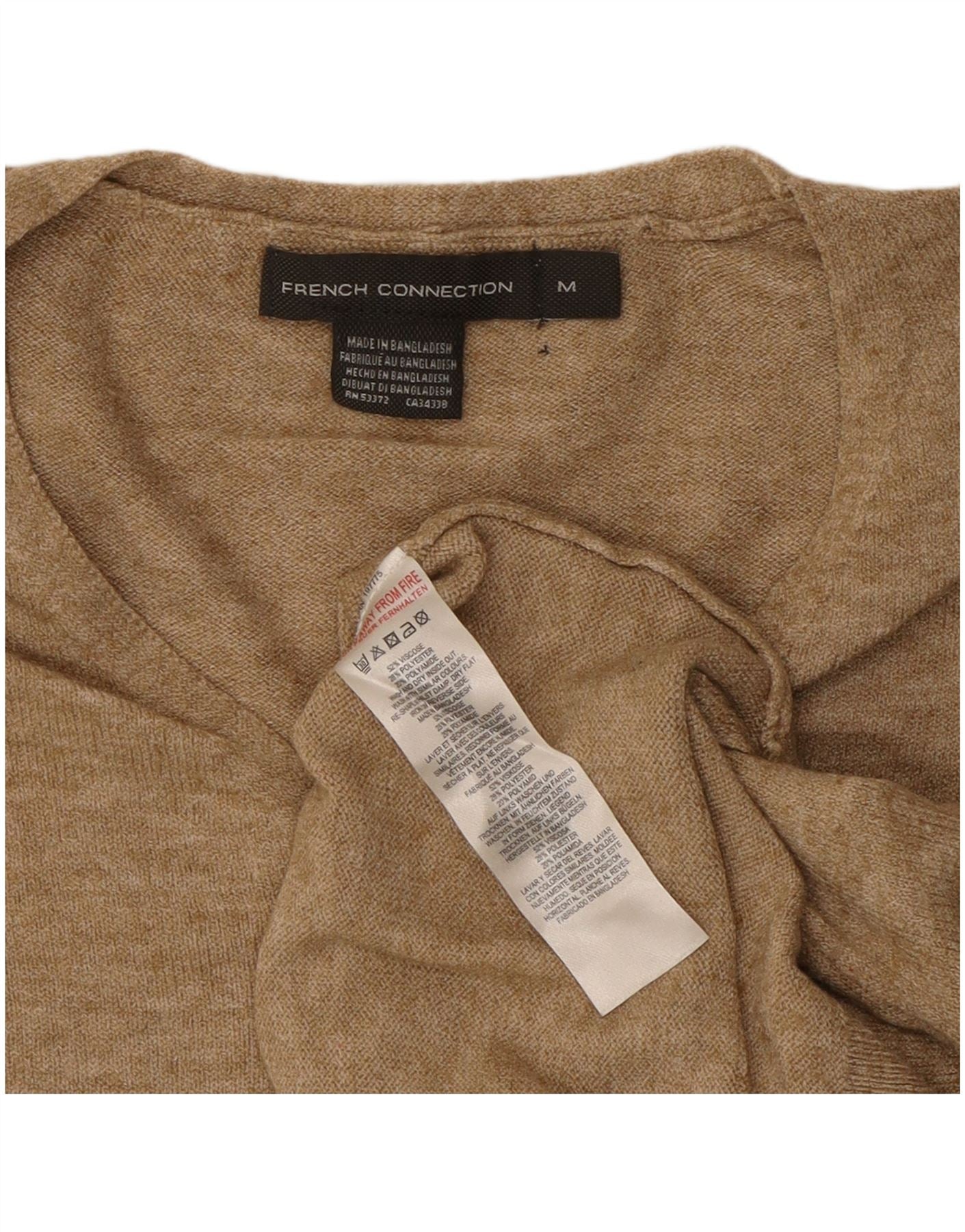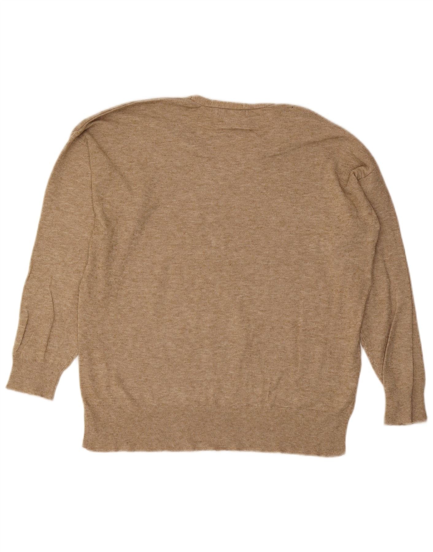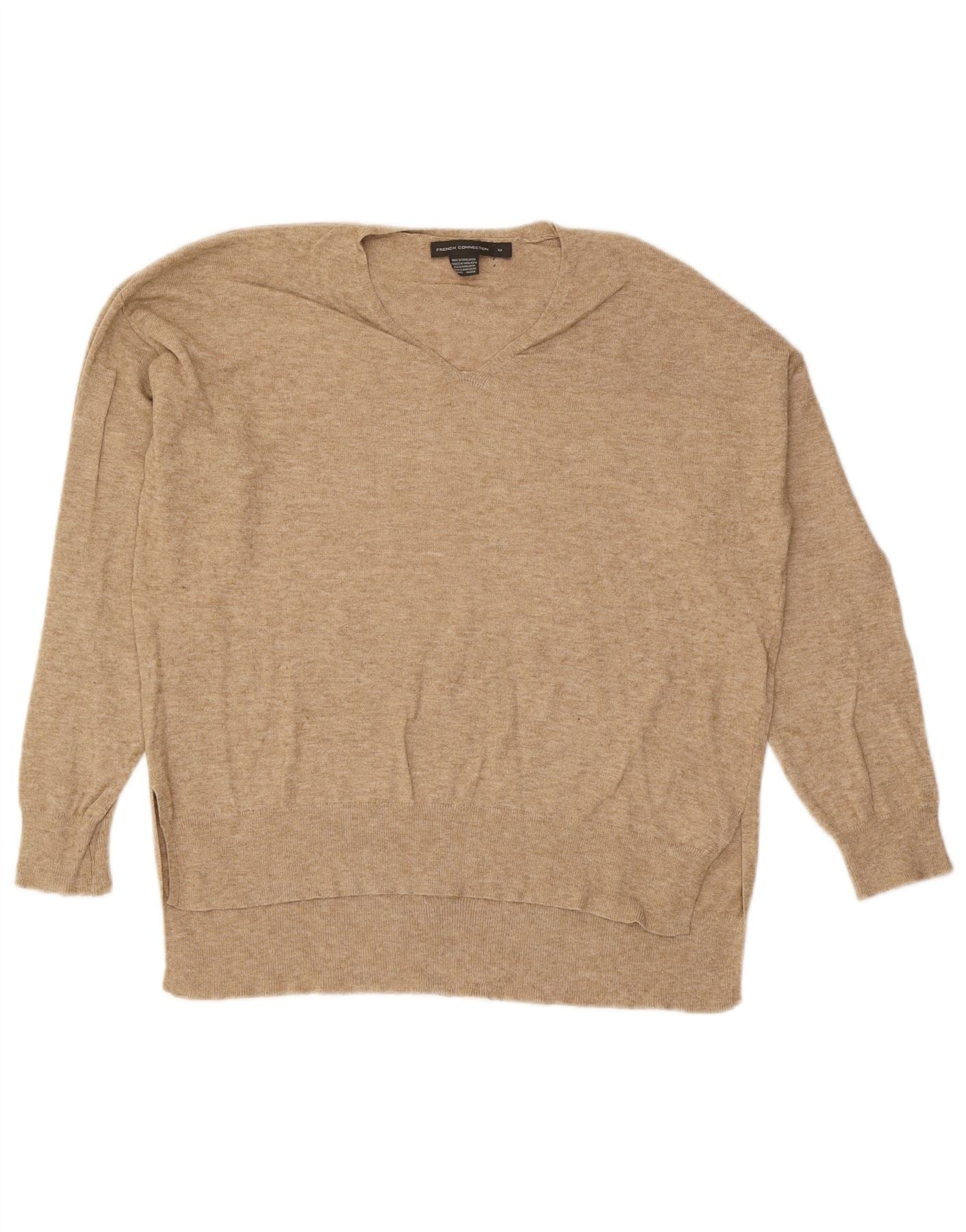 FRENCH CONNECTION Womens V-Neck Jumper Sweater UK 14 Medium Beige Viscose