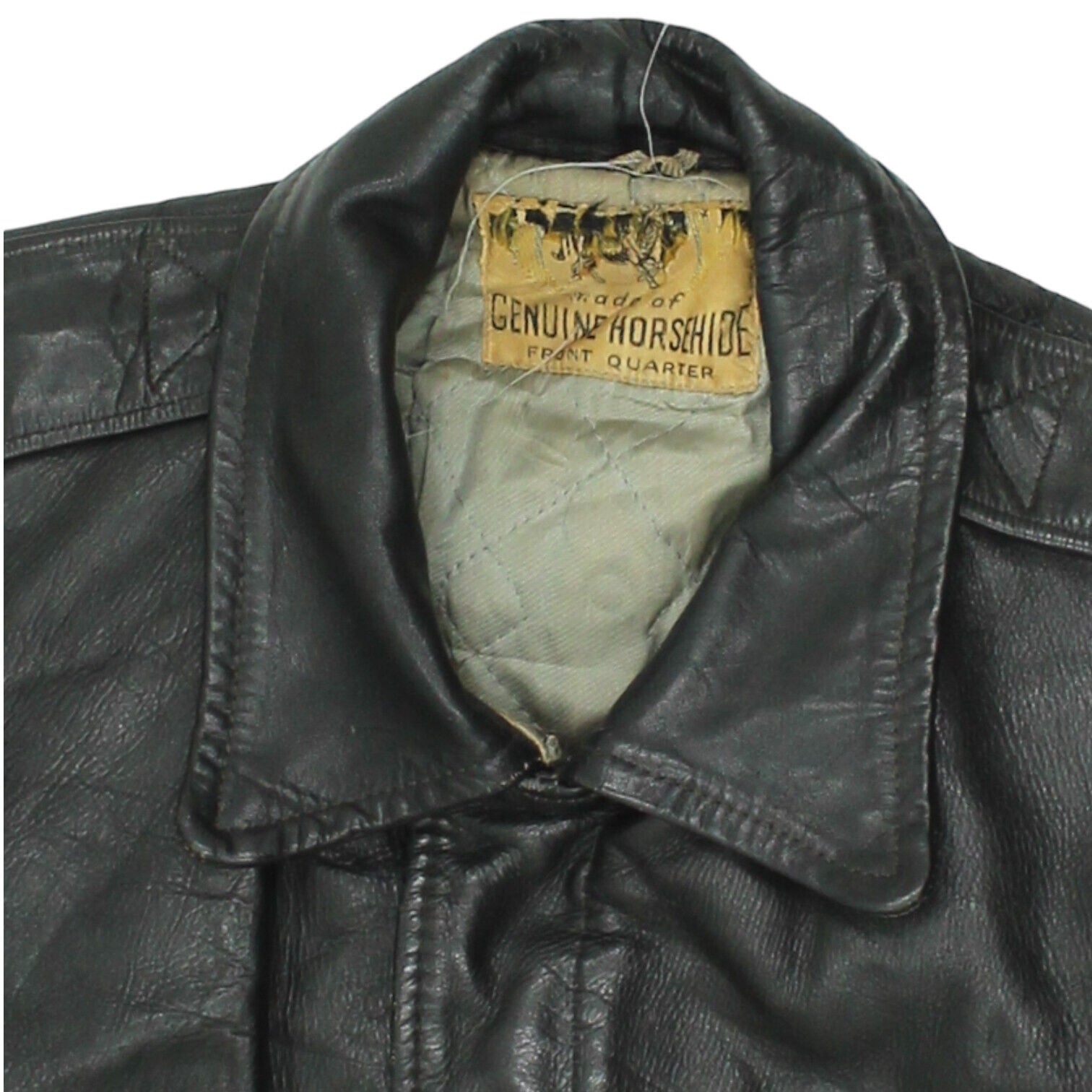 Front Quarter Horsehide Black Leather Quilted Jacket | Vintage High End Biker