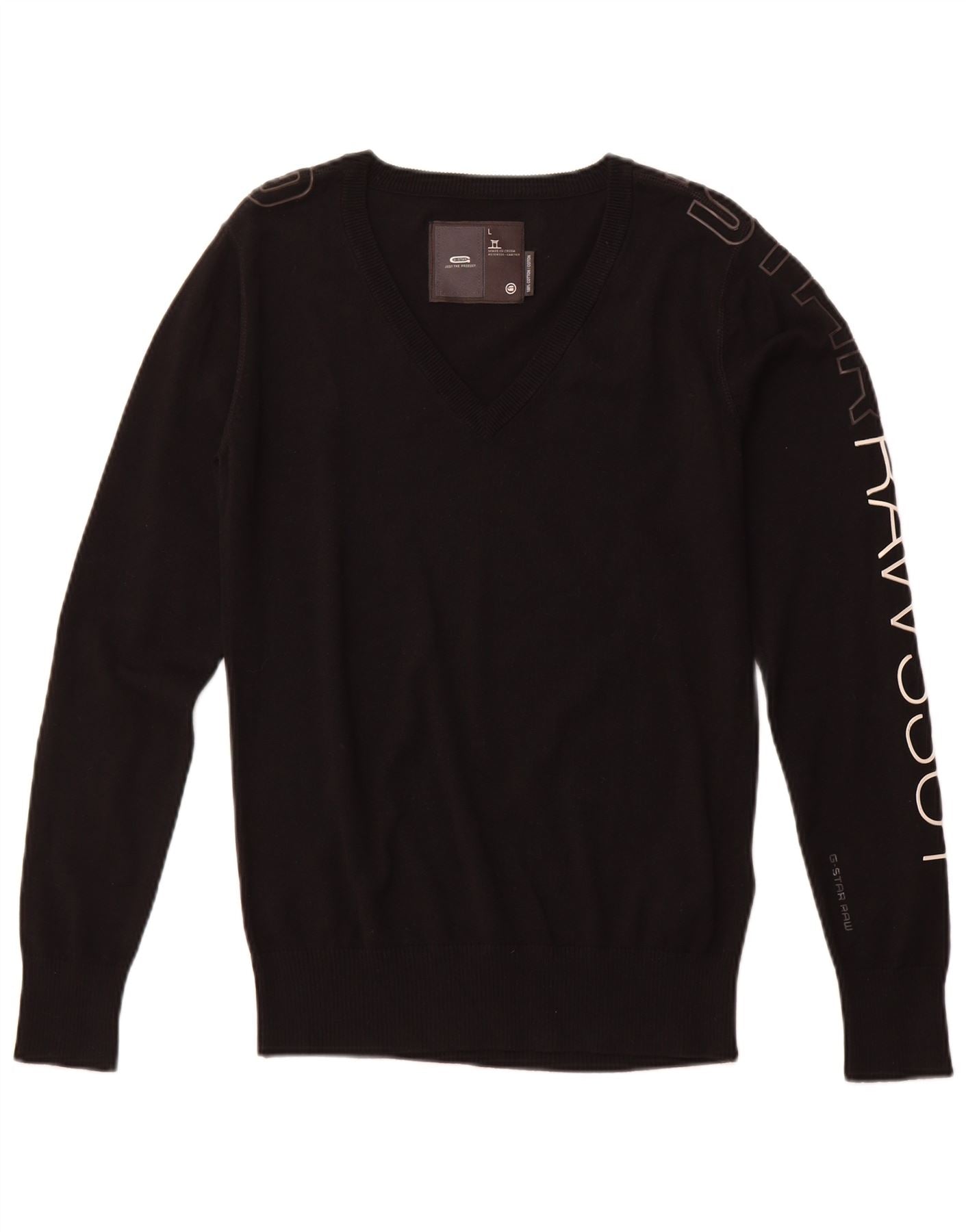 Мужской джемпер с V-образным вырезом и рисунком G-STAR, большой черный хлопковый свитер