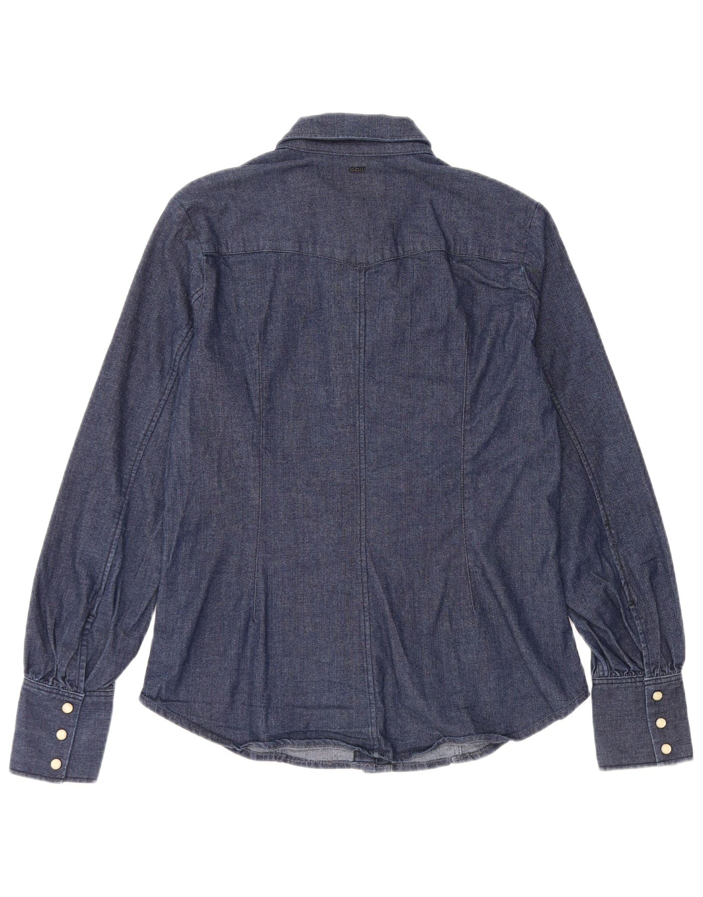 Home > Женский > Депоп Одежда > Женская джинсовая рубашка-блузка G-Star с оборками спереди, Великобритания, 10, маленькая, темно-синяя, хлопковая
