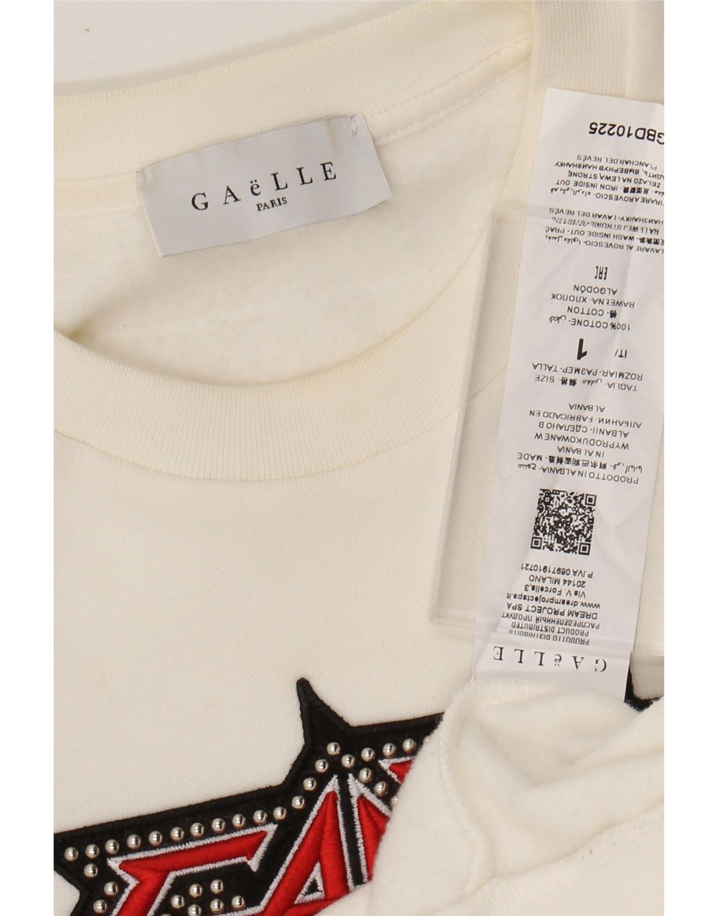 GAELLE Womens Crop Graphic Sweatshirt Jumper Size 1 Small White Cotton