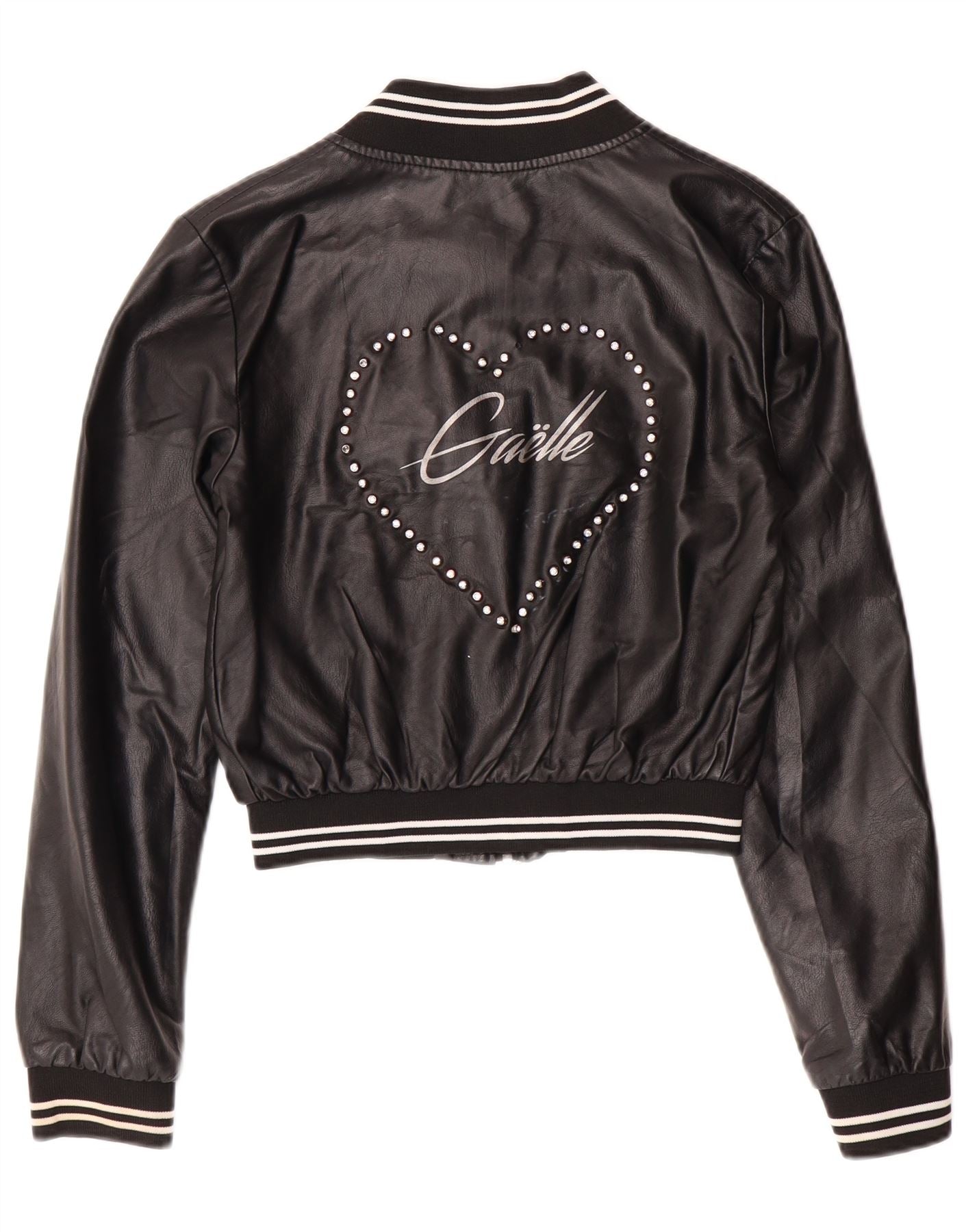 Женская укороченная кожаная куртка с графическим рисунком GAELLE UK 6 XS, черная