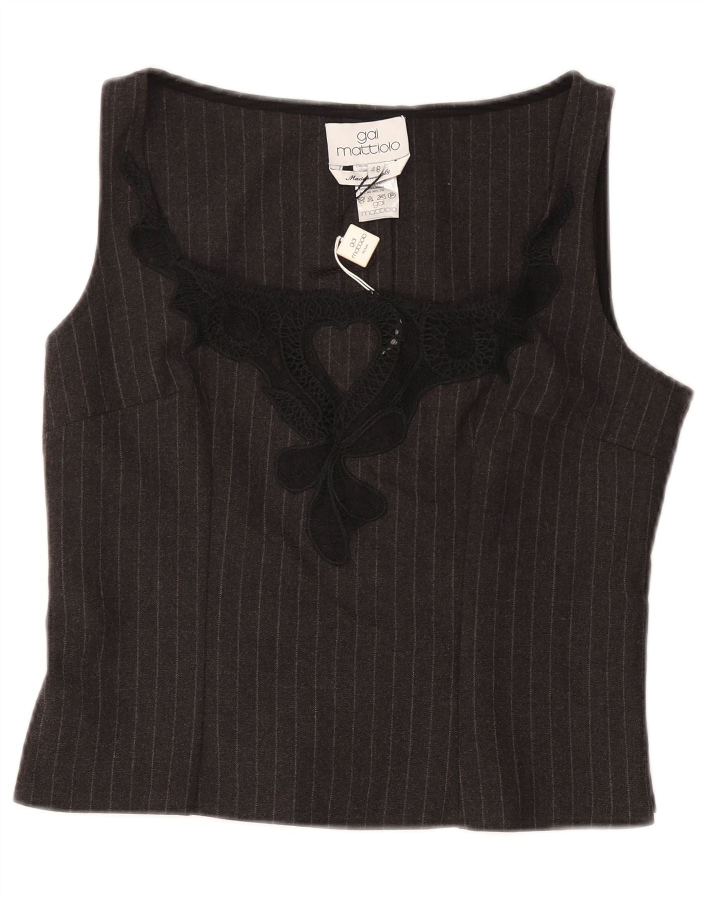 Home > Женский > Депоп Одежда > GAI MATTIOLO Женская укороченная блузка без рукавов IT 48 XL Серая в тонкую полоску