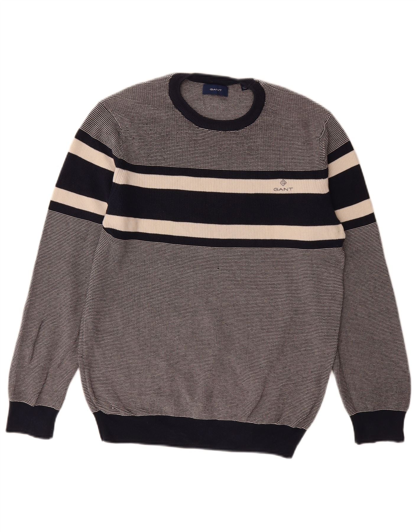 Мужской джемпер с круглым вырезом GANT, средний хлопковый свитер в темно-синюю полоску