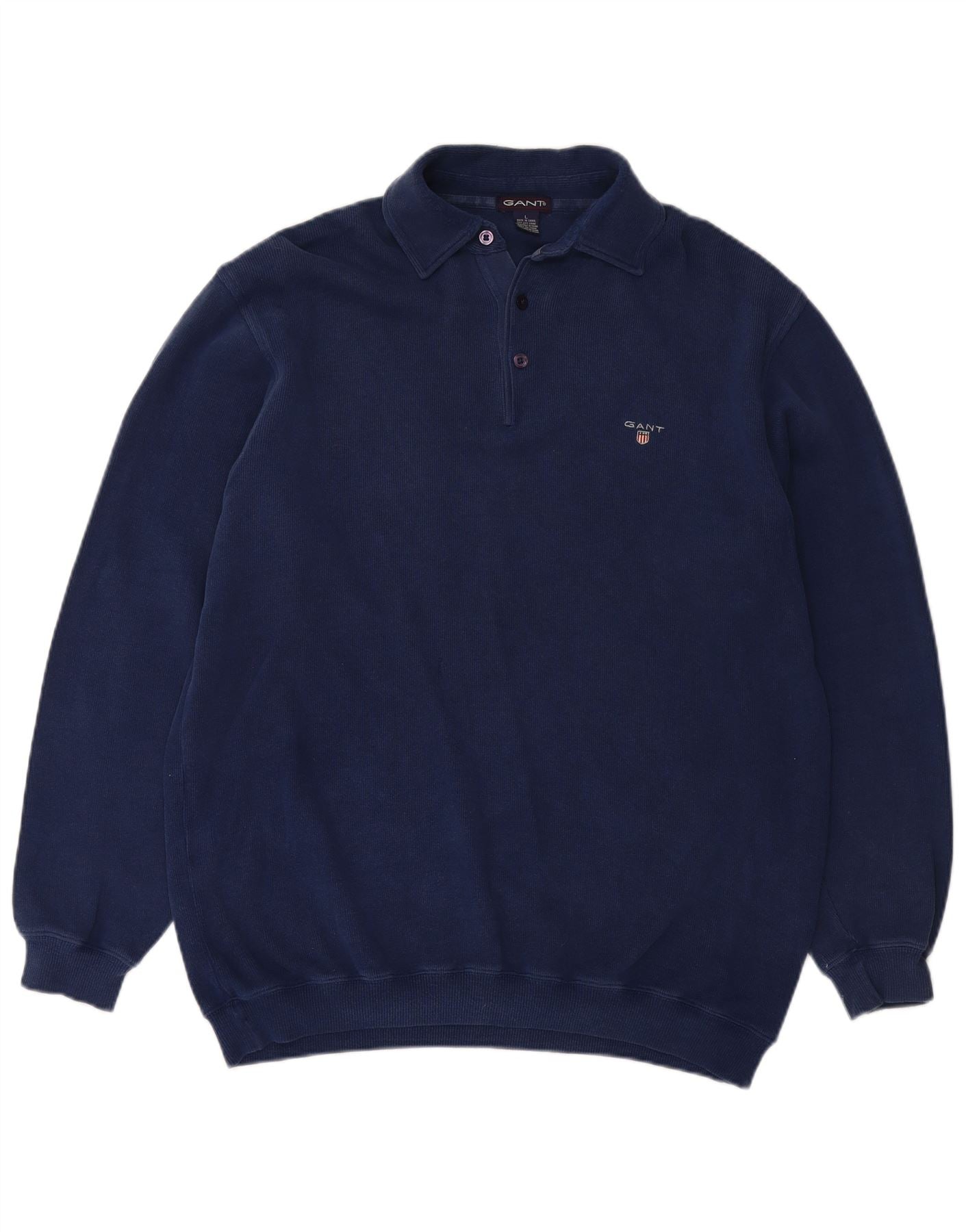 Мужской джемпер с воротником поло GANT, большой темно-синий хлопковый свитер