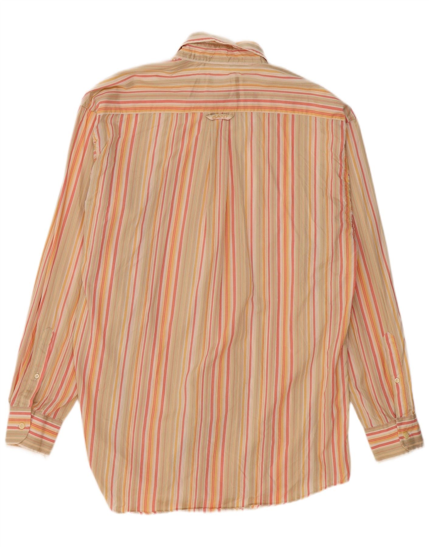 - Описание ИИ: Эта мужская рубашка Gant изготовлена из тканого материала с гладкой текстурой. Он имеет яркий разноцветный полосатый узор в бежевых, розовых и оранжевых тонах. Вырез с воротником и застежка на пуговицы создают классический образ. Длинные рукава заканчиваются манжетами на пуговицах. Один нагрудный карман добавляет практичности. Регулярная посадка обеспечивает удобство ношения и неподвластный времени стиль.