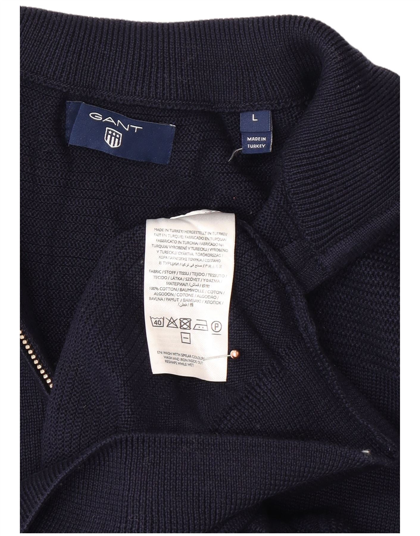 GANT Мужской джемпер с воротником на молнии, большой темно-синий хлопковый свитер