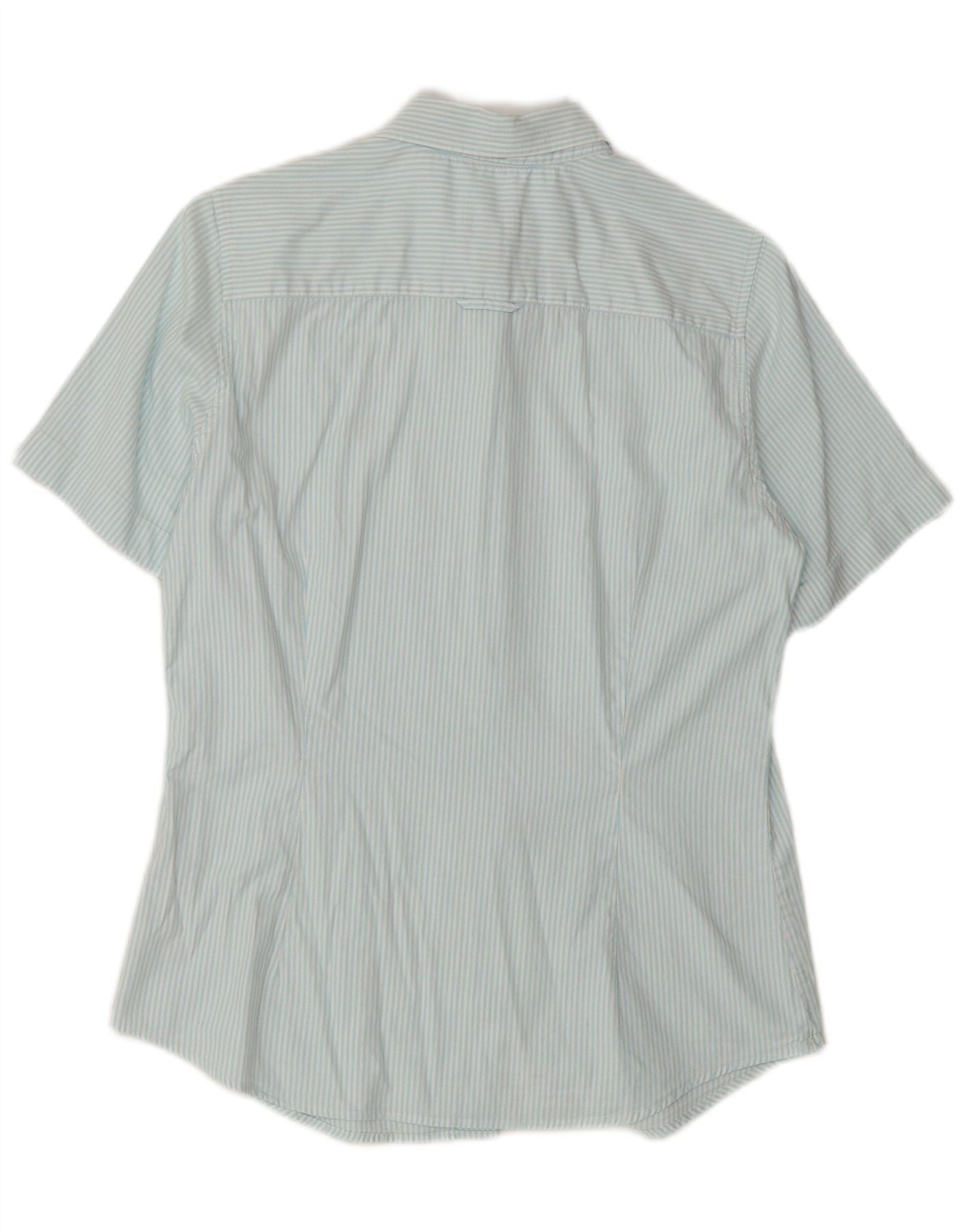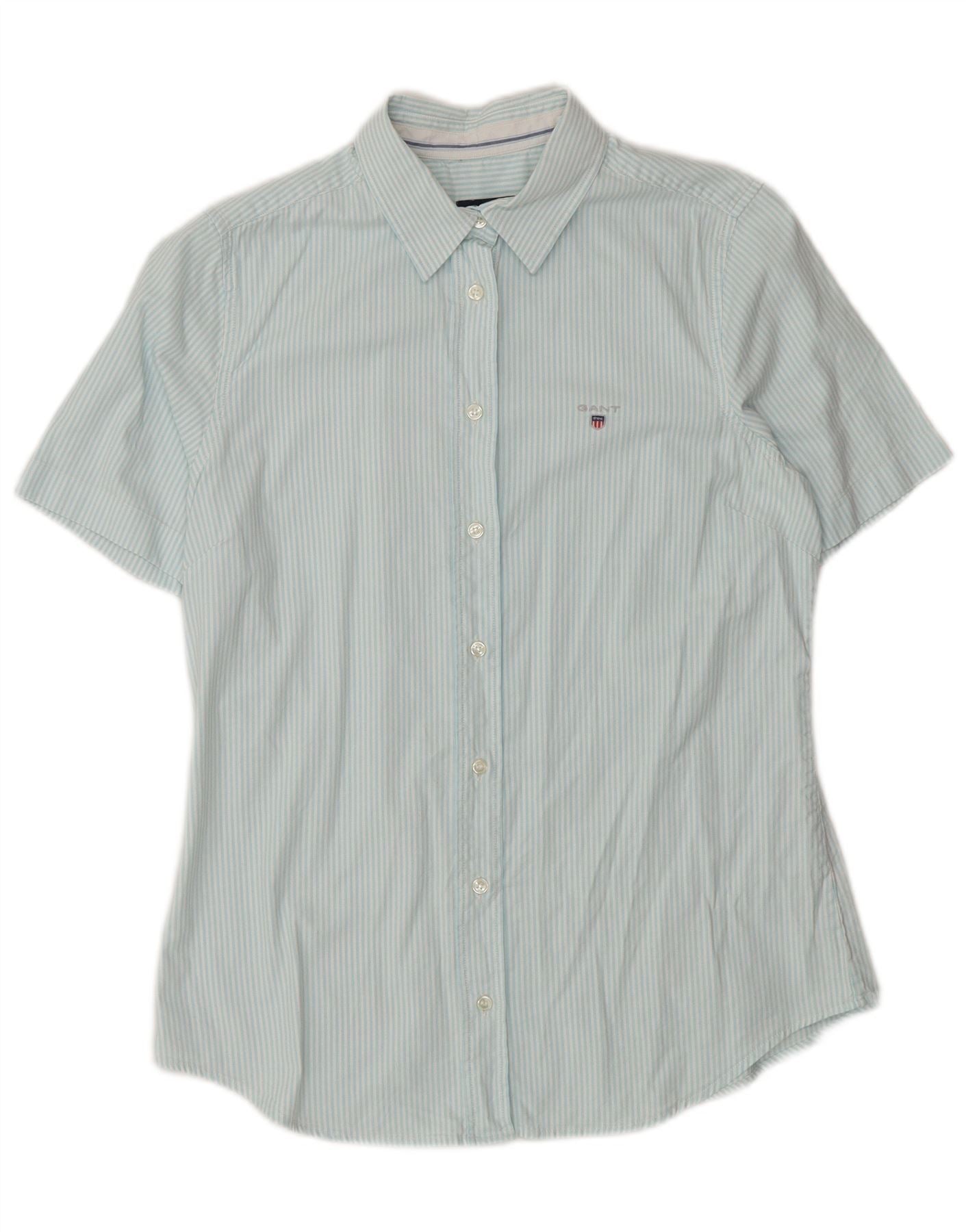 GANT Женская рубашка с коротким рукавом UK 12, средний синий хлопок в тонкую полоску
