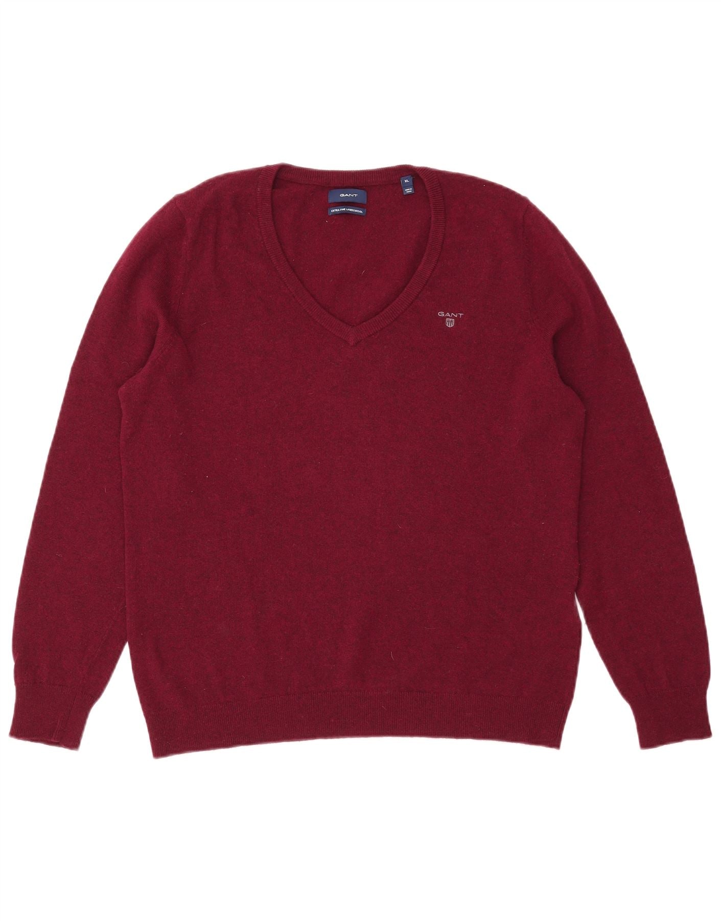 Женский джемпер GANT с v-образным вырезом, Великобритания 18 XL, темно-бордовый, шерсть