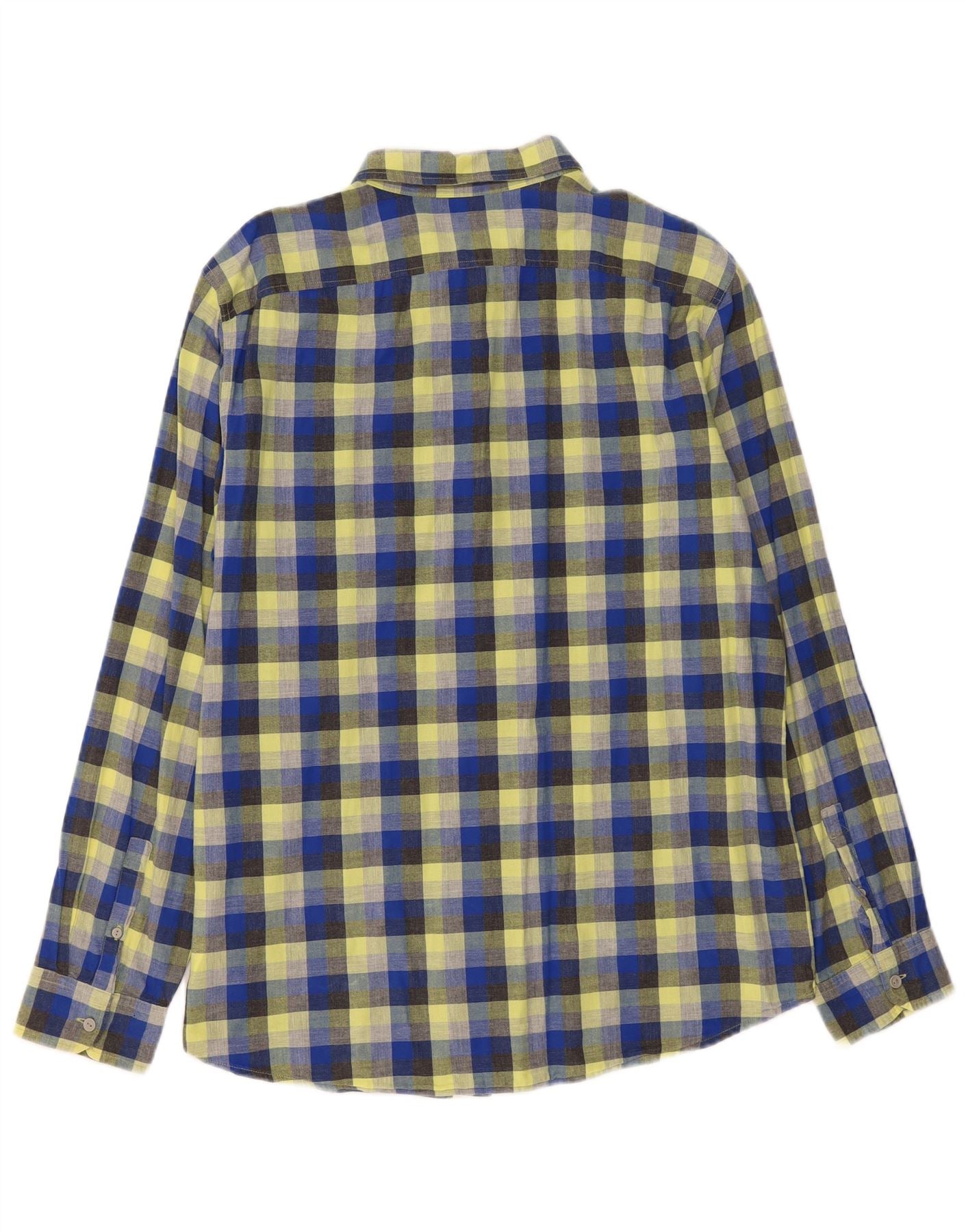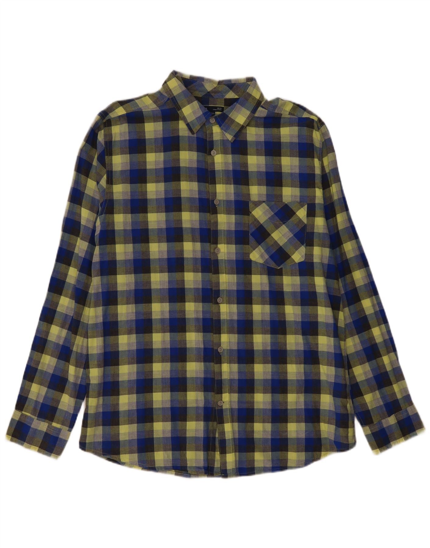 - Описание ИИ: Эта мужская рубашка Gap изготовлена из 100-процентной хлопчатобумажной ткани с ярким клетчатым узором желтого, синего и черного цветов. Имеет классический вырез горловины и застежку на пуговицы спереди. Длинные рукава заканчиваются аккуратными манжетами на пуговицах. Один нагрудный карман добавляет практичности. Узкий крой создает современный, индивидуальный силуэт, создающий эффектный образ.