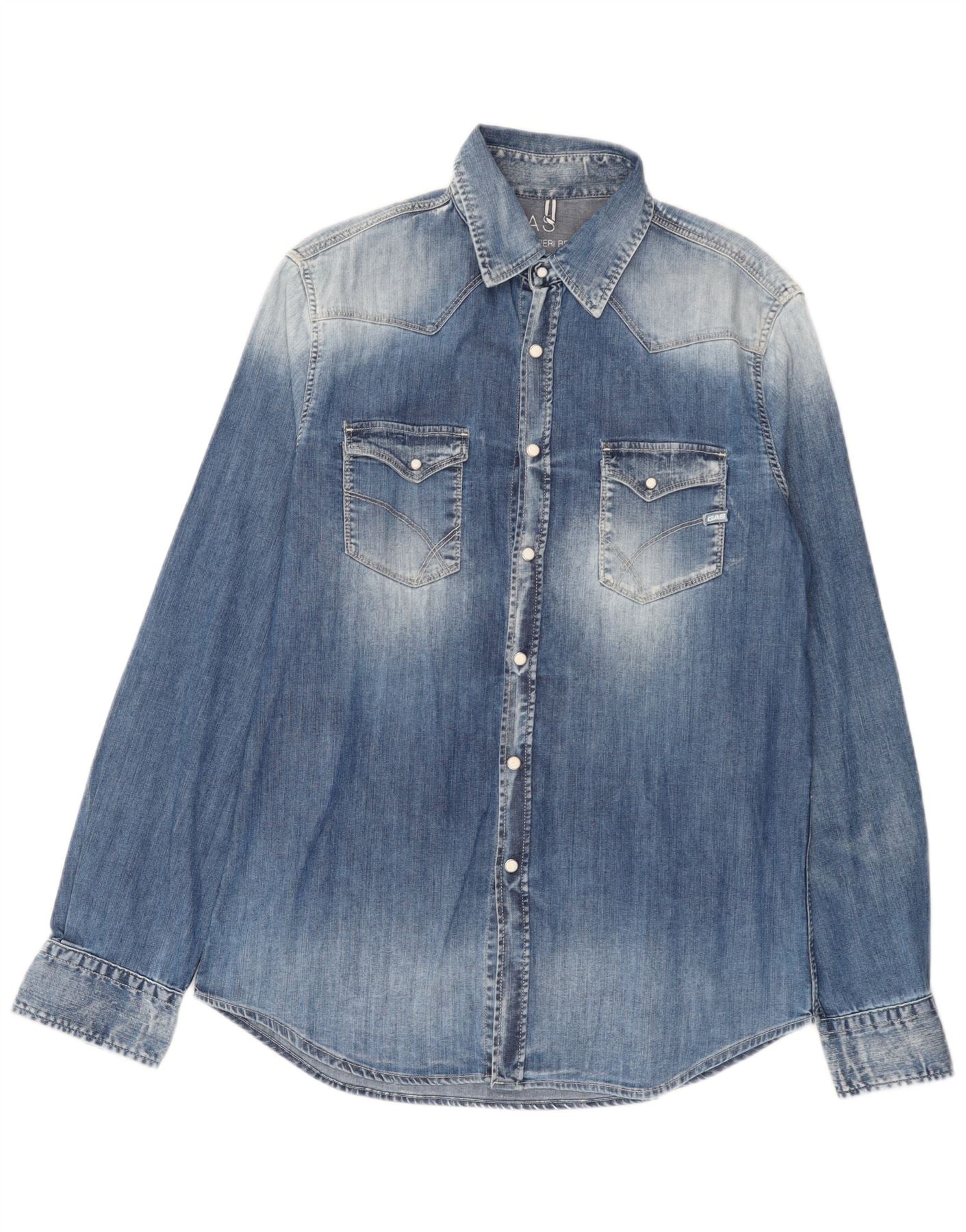 Мужская джинсовая рубашка Gas, синяя, хлопковая, большого размера