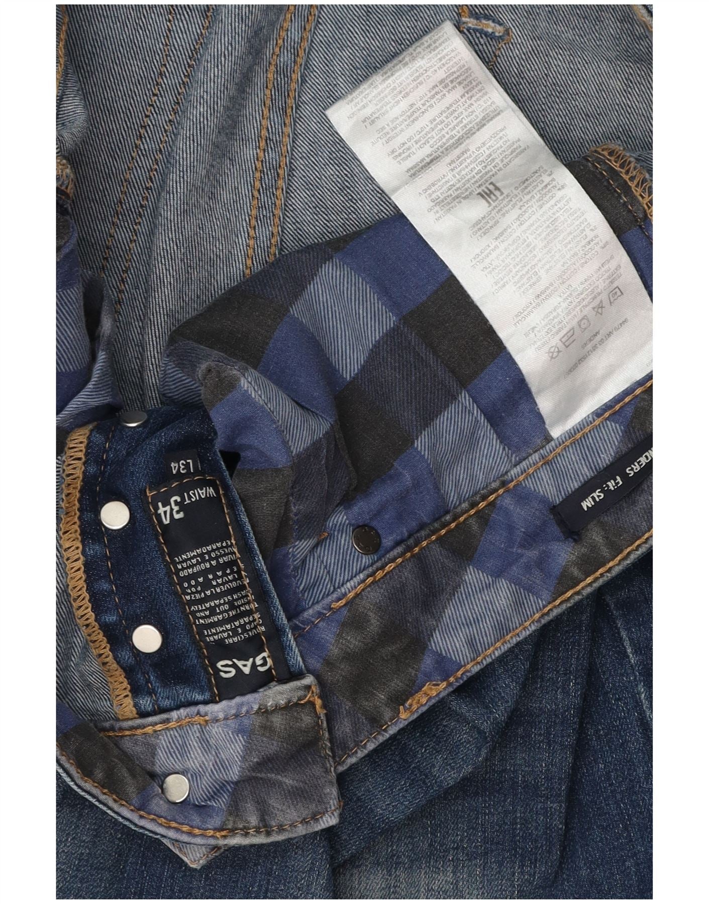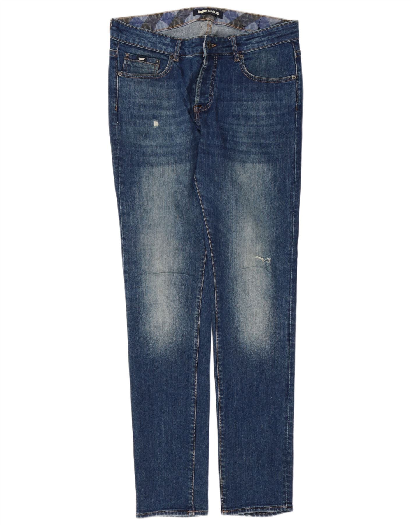 Мужские потертые узкие джинсы GAS W34 L34, синий хлопок
