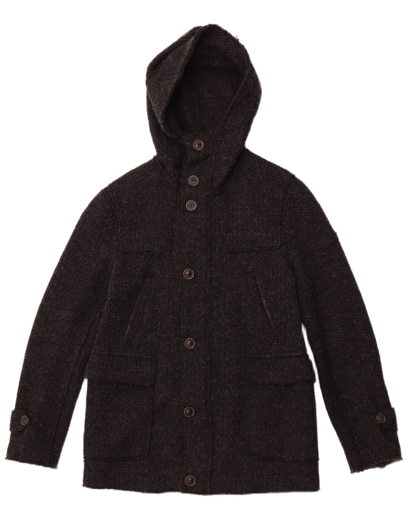 Мужское пальто с капюшоном GAS UK 36, маленькое темно-синее из натуральной шерсти