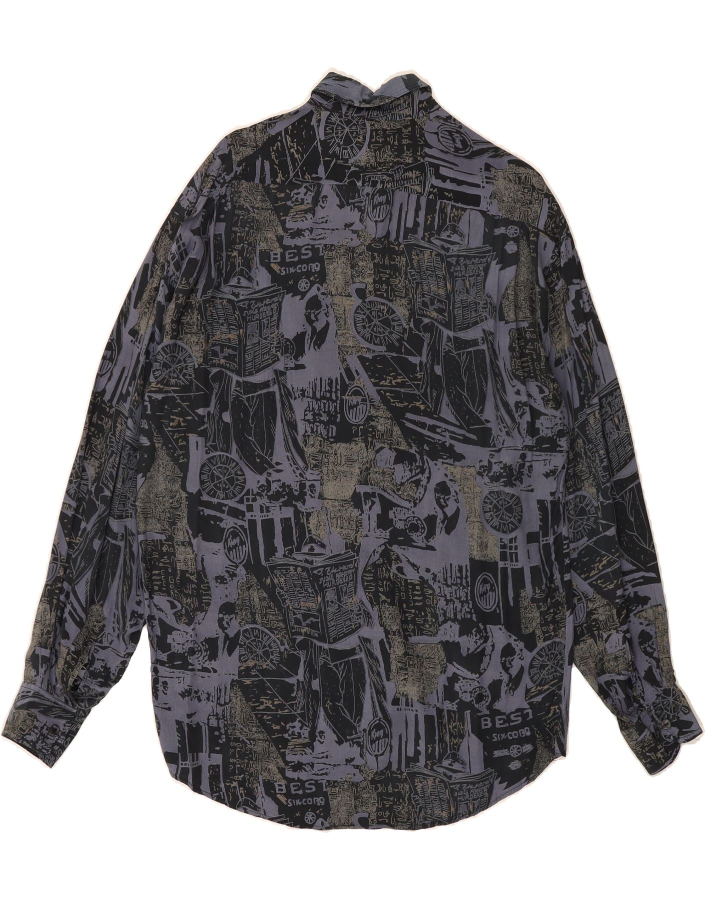 GEORGE HAUPT Mens Graphic Shirt Size 38 Small Navy Blue Viscose