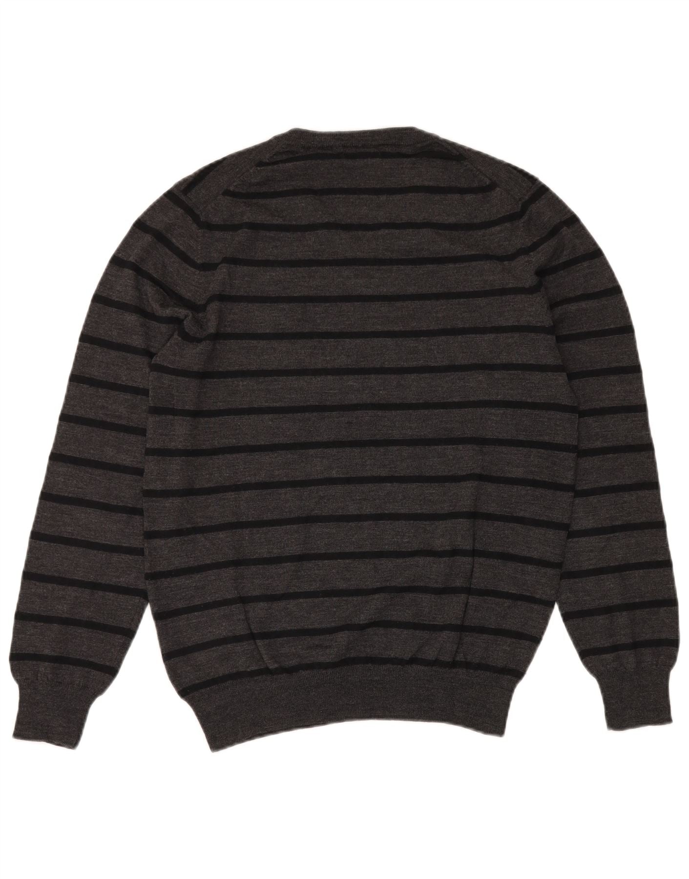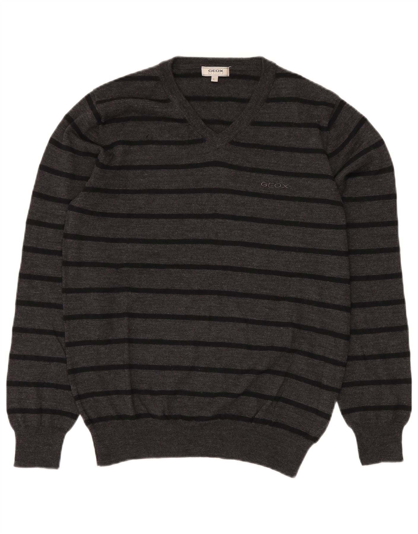 Женский джемпер GEOX с v-образным вырезом UK 16, большая серая полоска из мериносовой шерсти