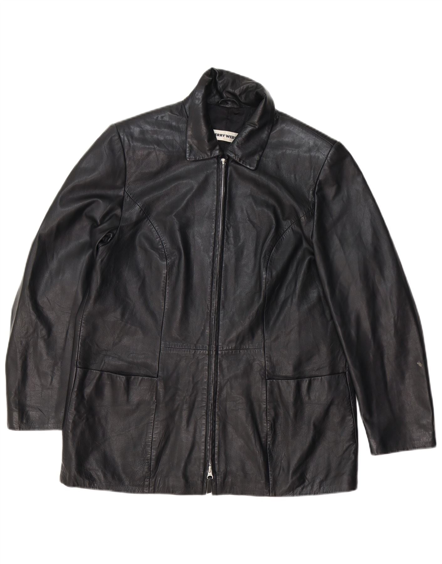 GERRY WEBER Женское кожаное пальто UK 16 большое черное кожаное