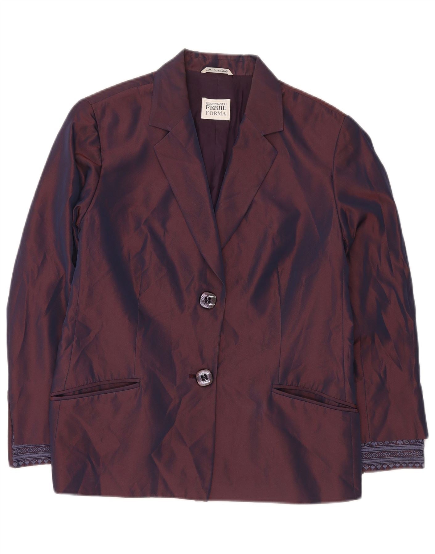 GIANFRANCO FERRE Женский пиджак на 2 пуговицах, Великобритания 16, большой фиолетовый с цветочным принтом