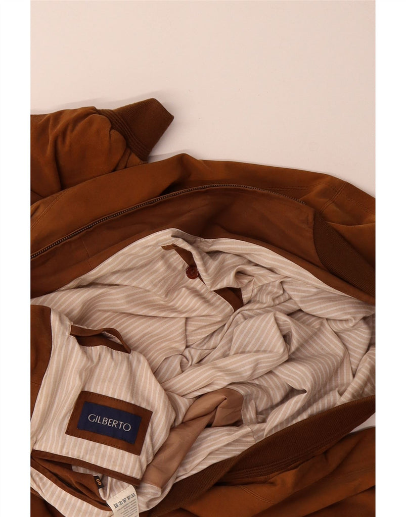 GILBERTO Mens Suede Bomber Jacket IT 60 5XL Brown Leather