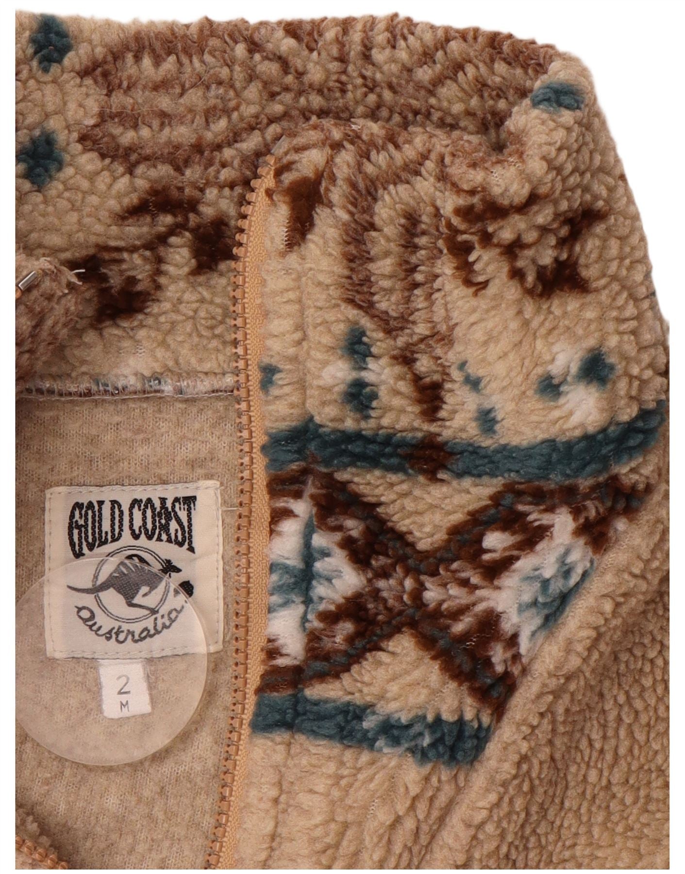 GOLD COAST Womens Fleece Jacket UK 14 Medium Beige Fair Isle Polyester