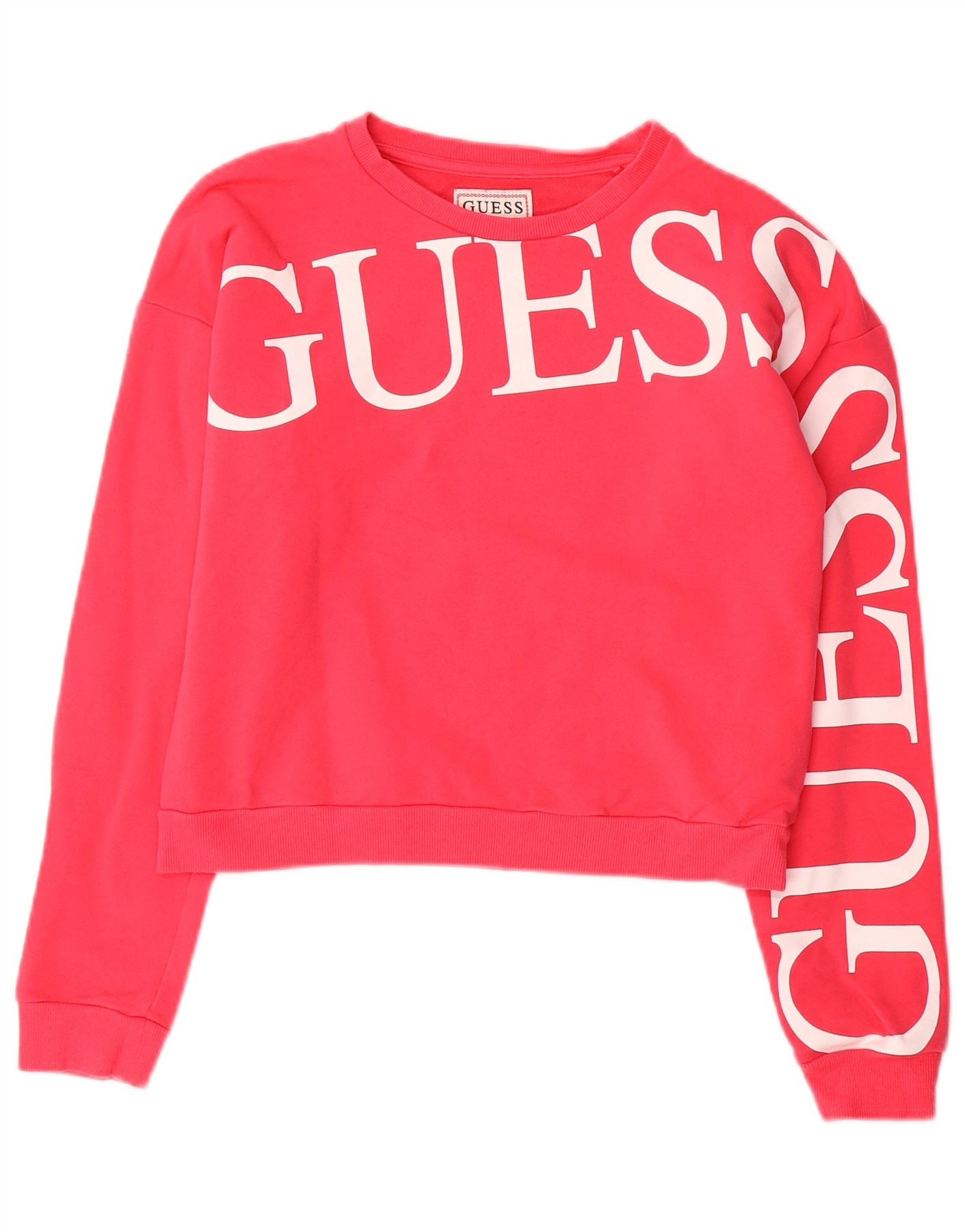 Укороченный свитшот с рисунком для девочек GUESS, джемпер, 13–14 лет, розовый хлопок