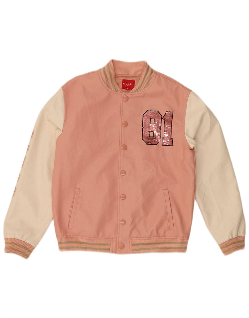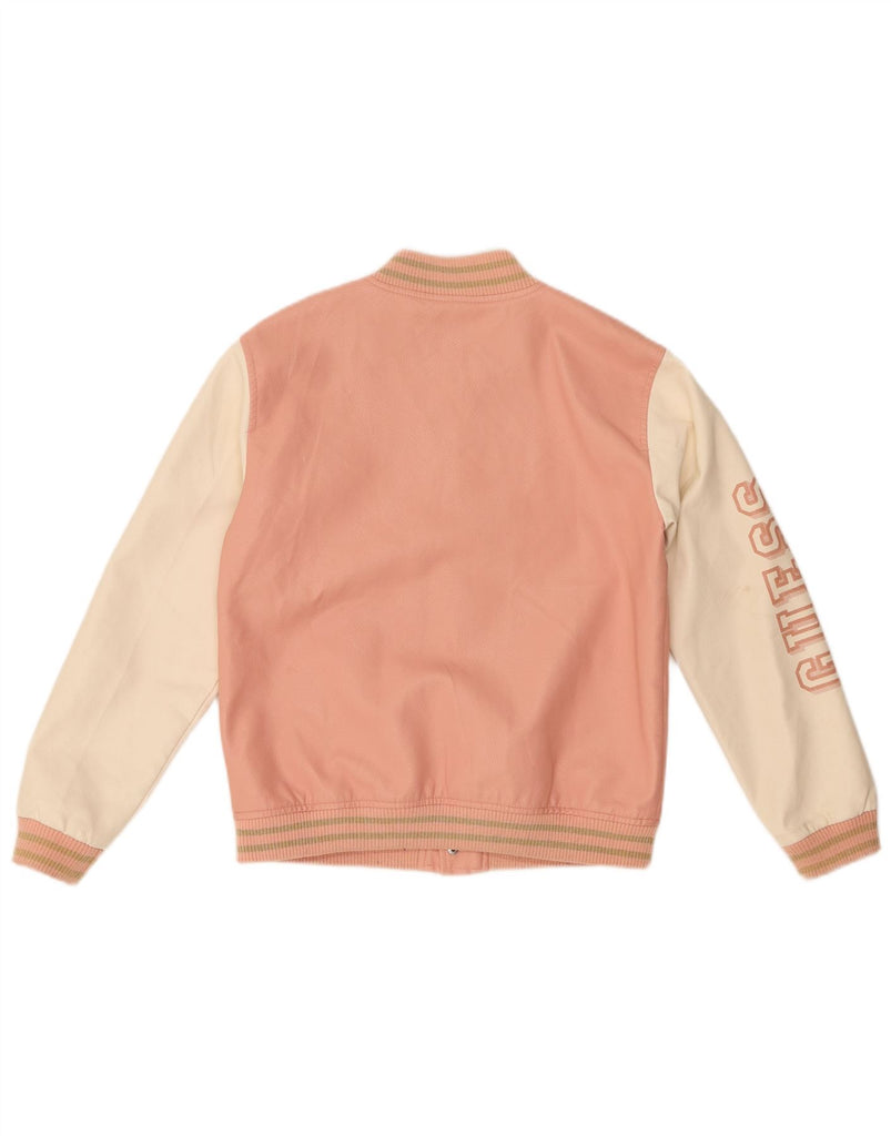 GUESS Girls Graphic Varsity Jacket 13-14 Years Pink Colourblock