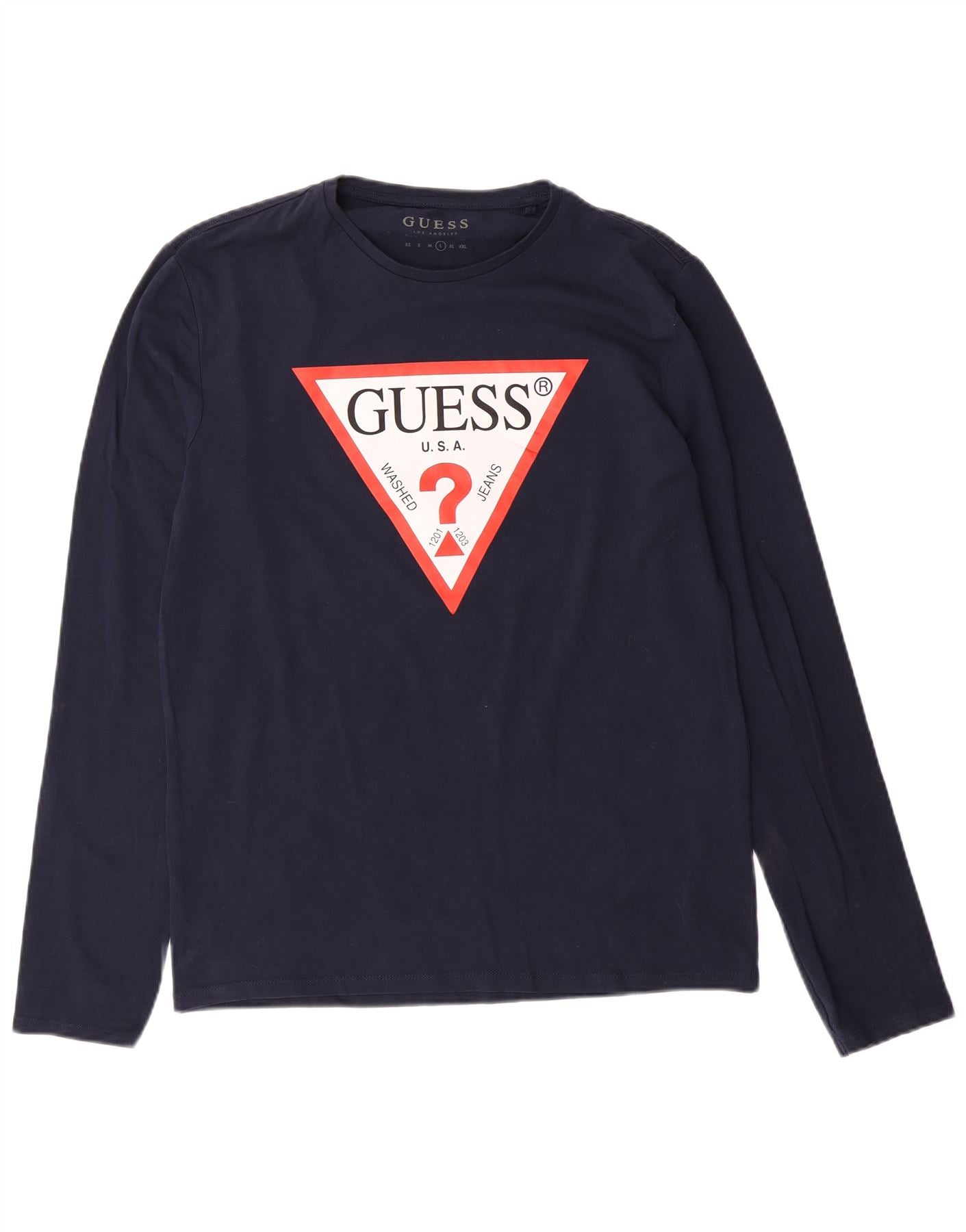 Мужской топ с длинным рукавом GUESS, темно-синий, хлопок, большой размер