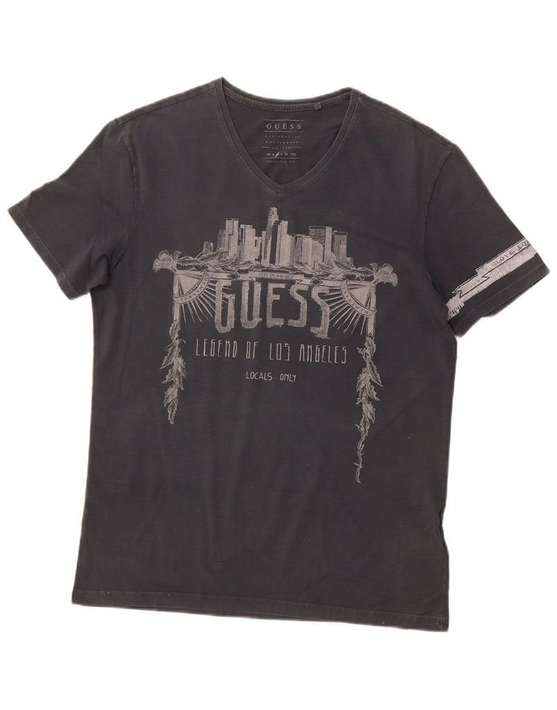 Мужская футболка GUESS Los Angeles Extra Slim с рисунком, топ среднего серого цвета, хлопок