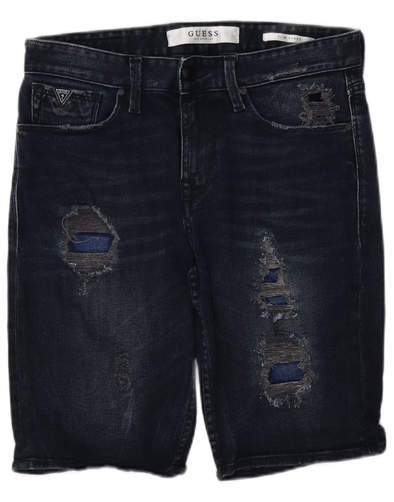 Мужские узкие джинсовые шорты GUESS W30, темно-синие, хлопок, средний размер