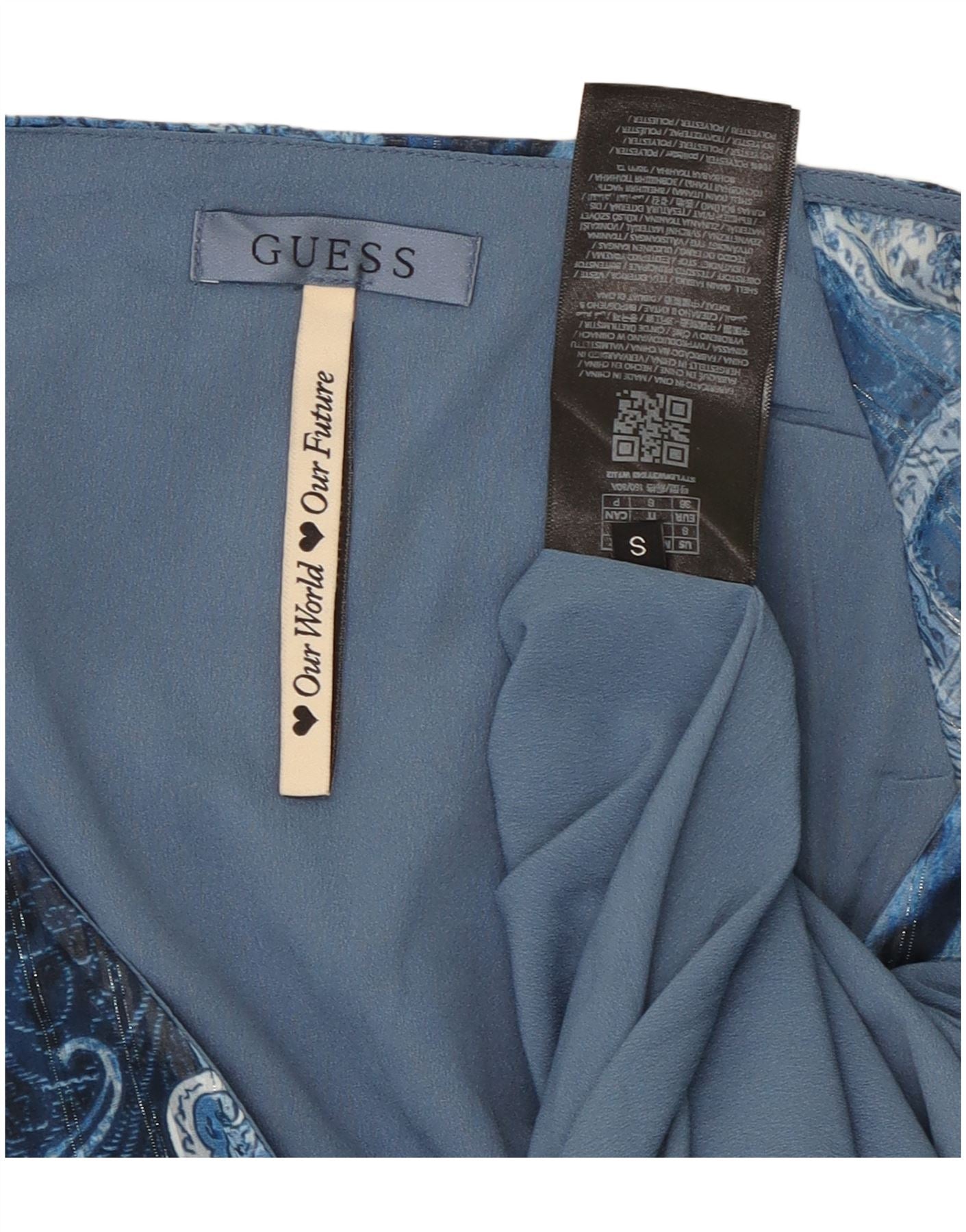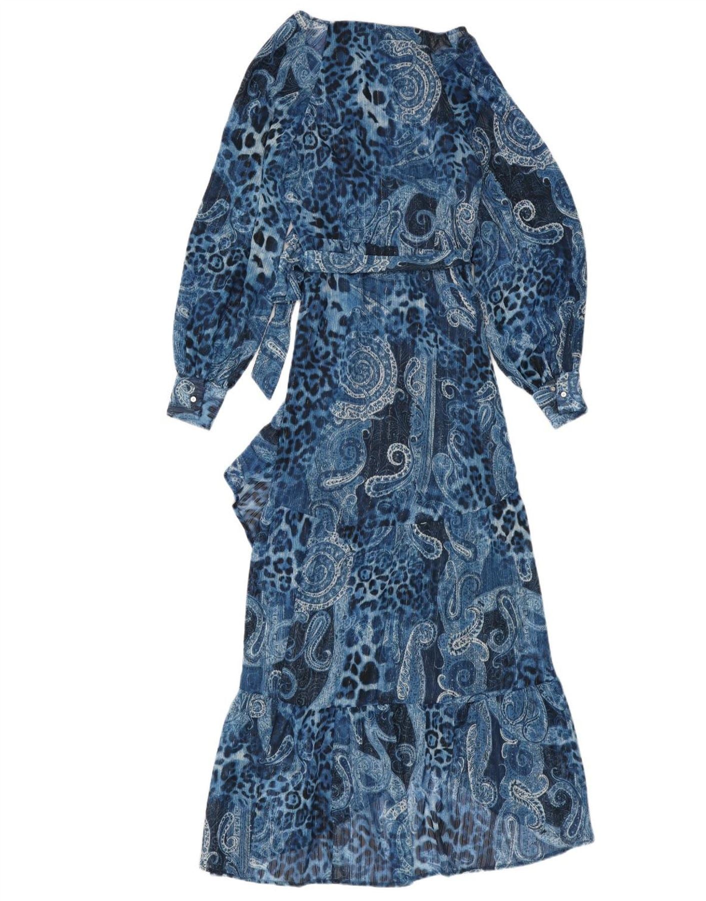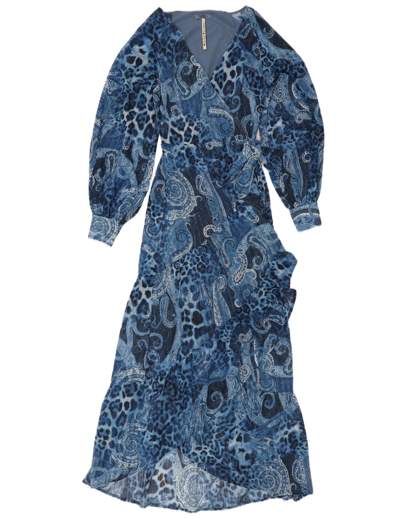 GUESS Женское асимметричное платье с запахом UK 10, маленькое синее, полиэстер с узором пейсли