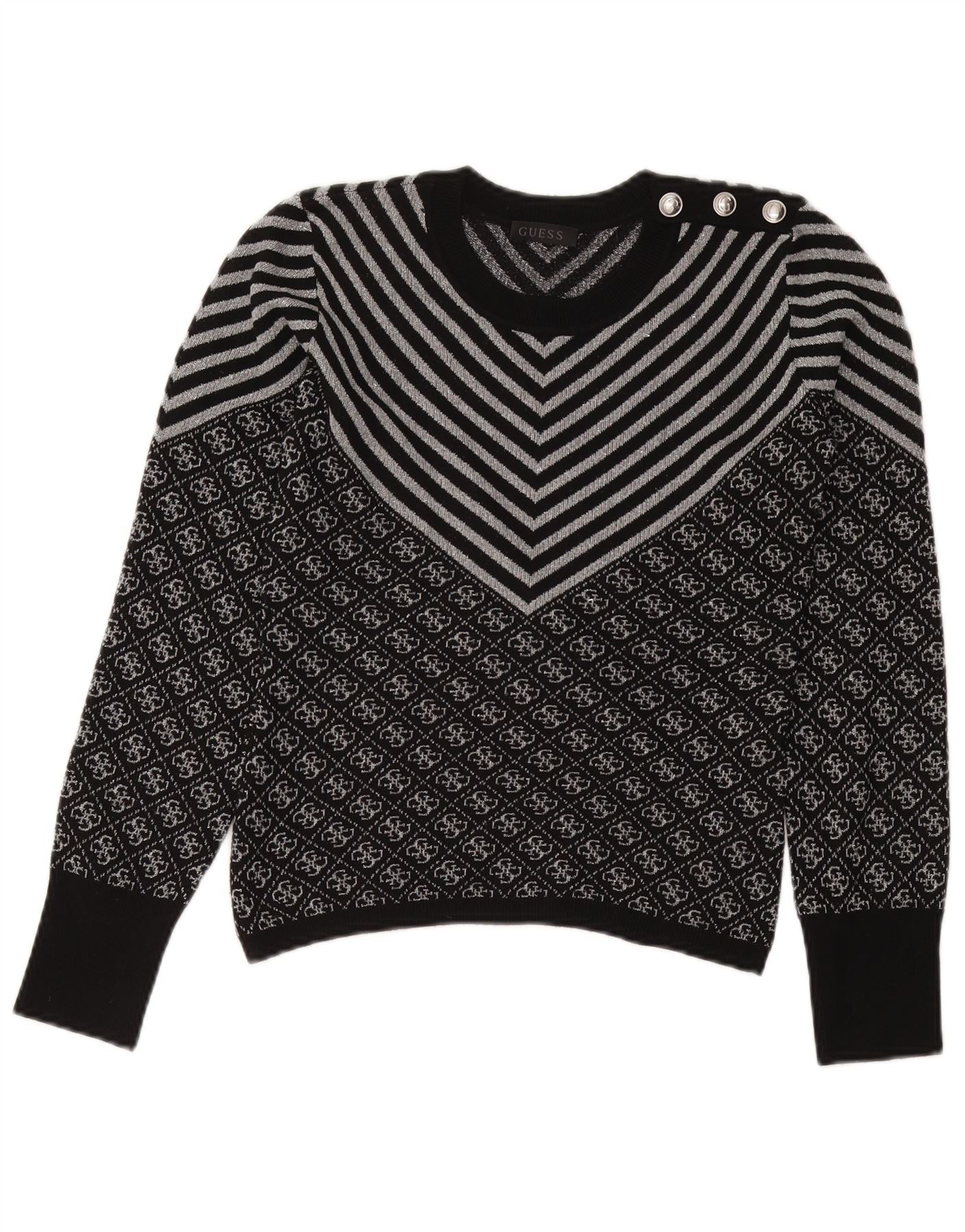 Женский джемпер с круглым вырезом GUESS UK 6 XS, полиэстер, черный с шевроном