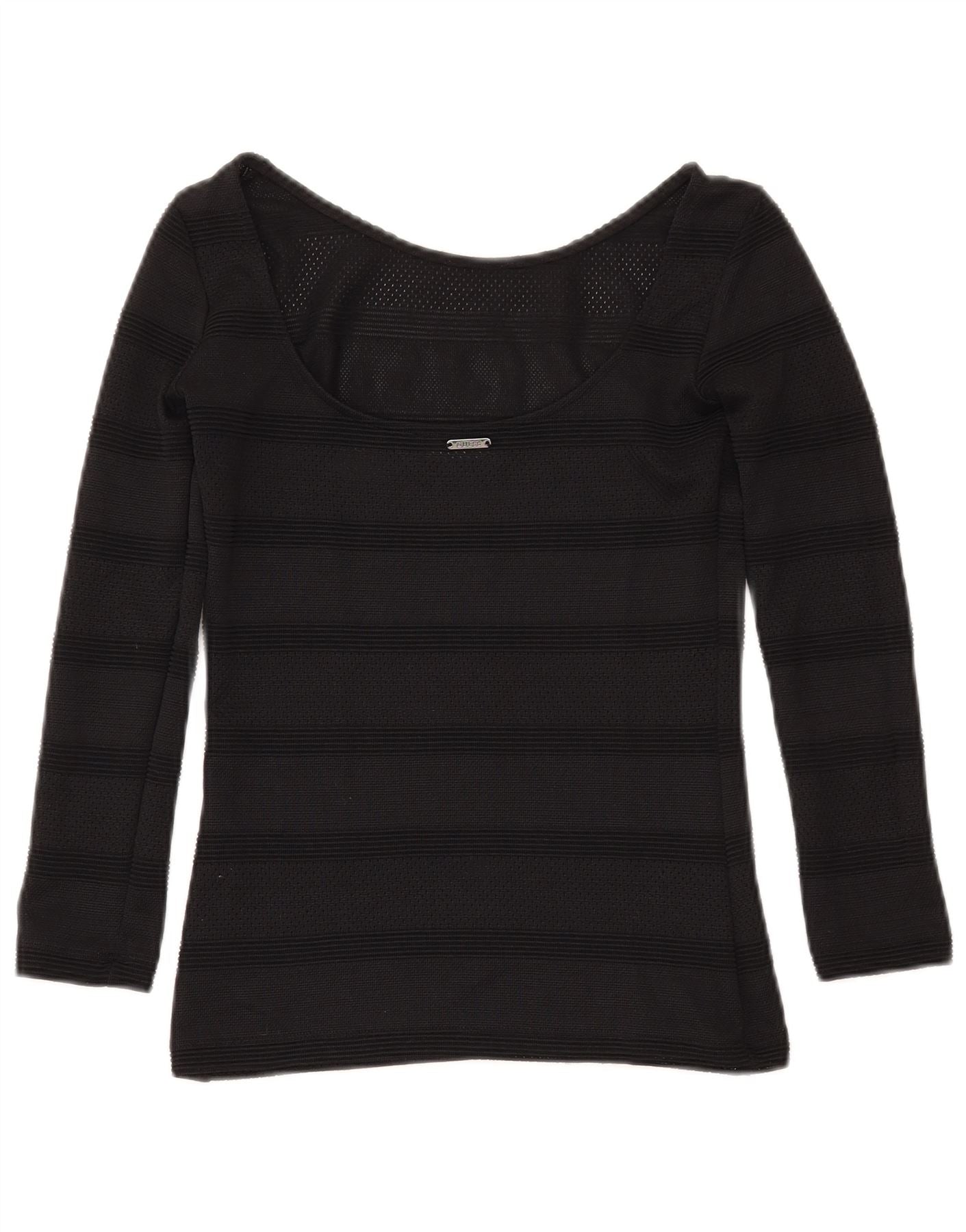 Женский укороченный джемпер с вырезом лодочкой GUESS UK 4 XS, черный в полоску