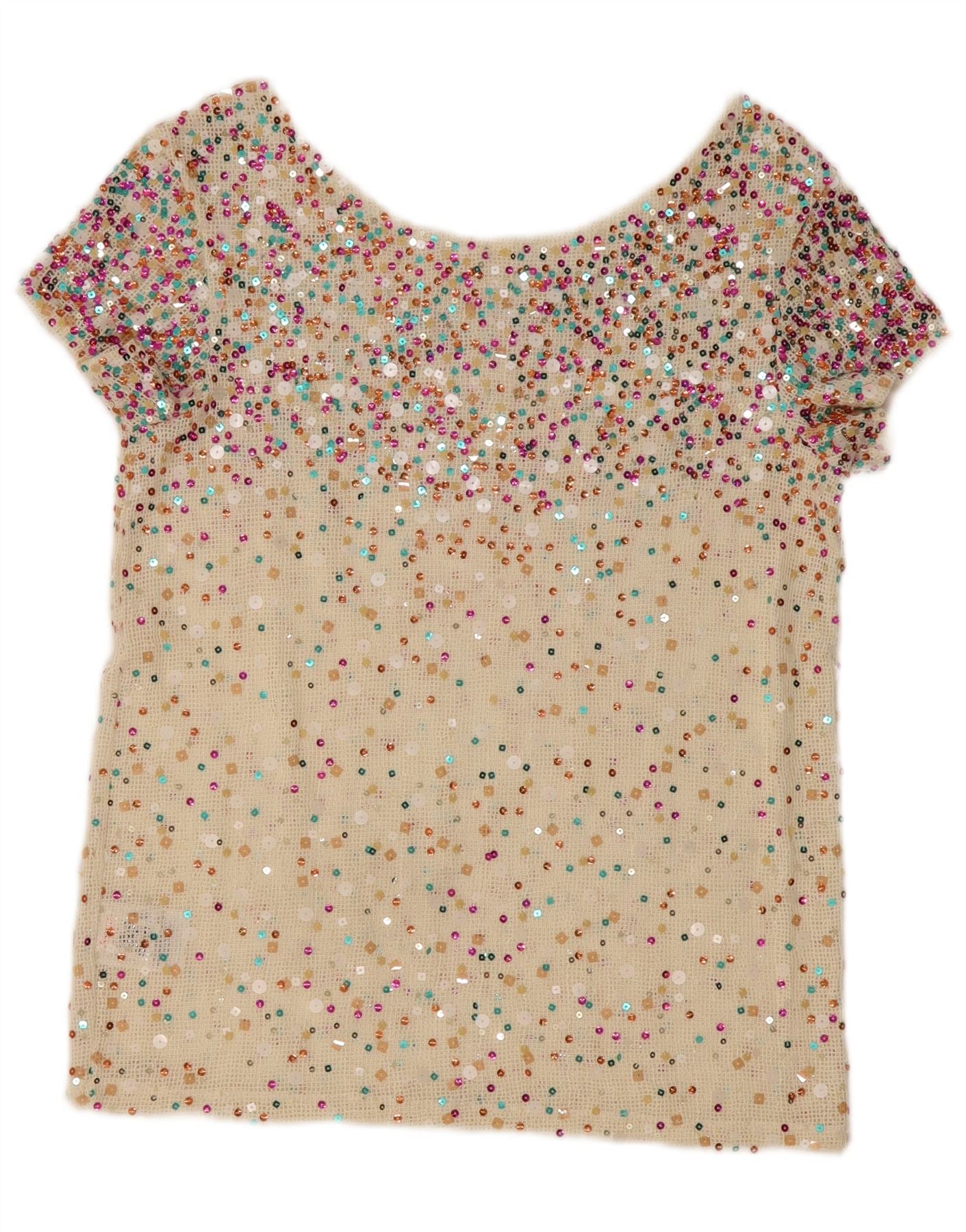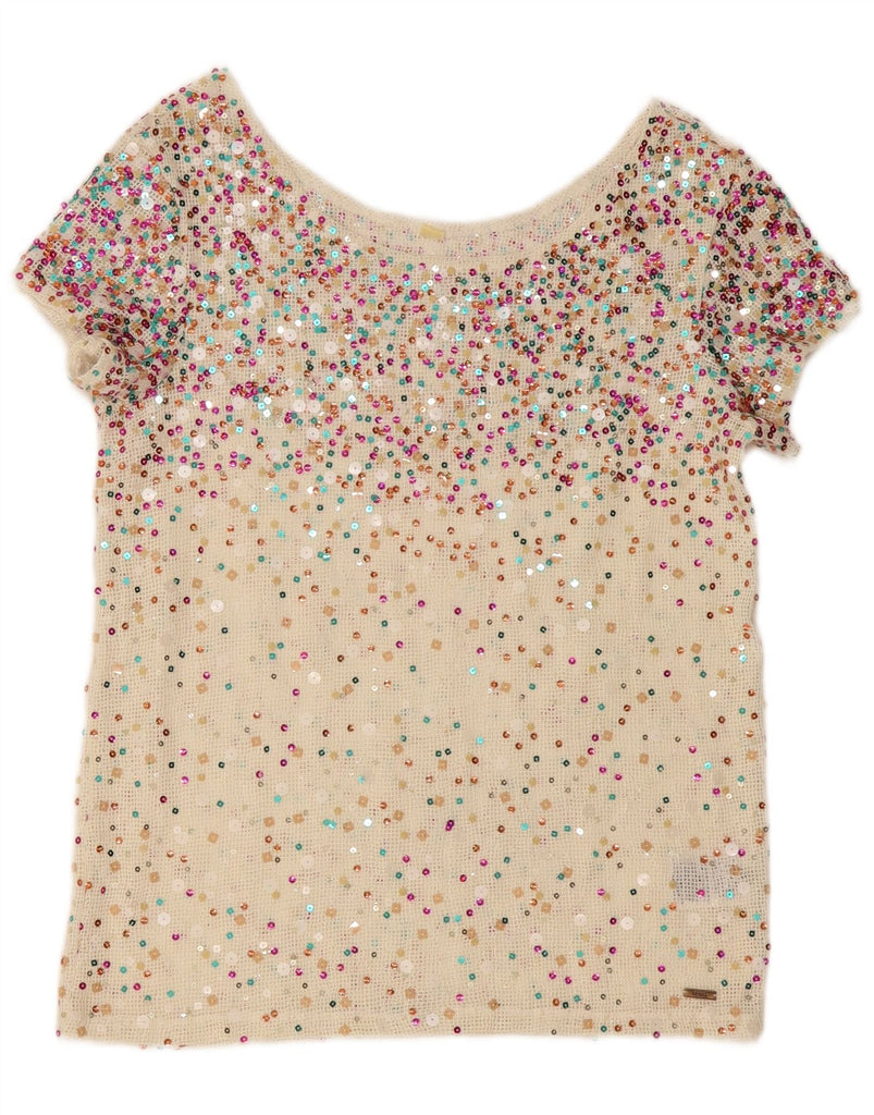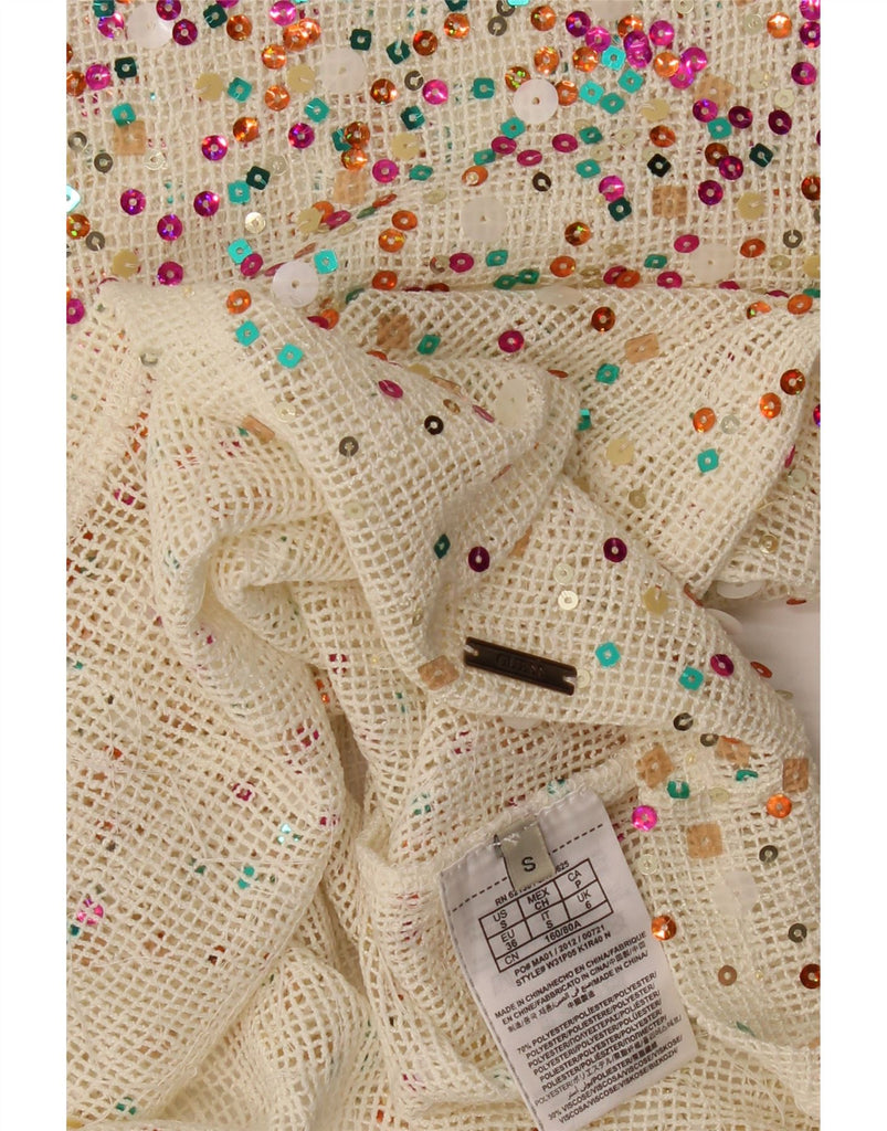 Женская блузка крючком с пайетками GUESS, топ UK 10, маленький, белый, полиэстер
