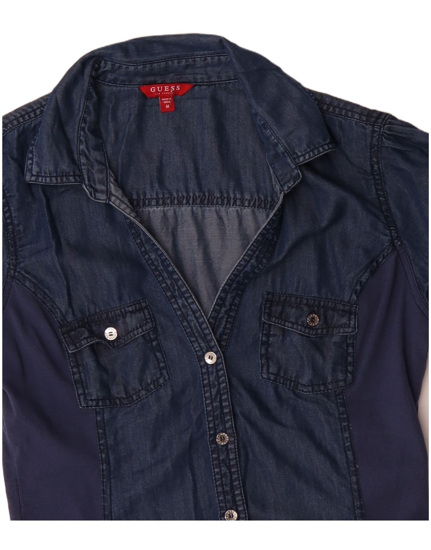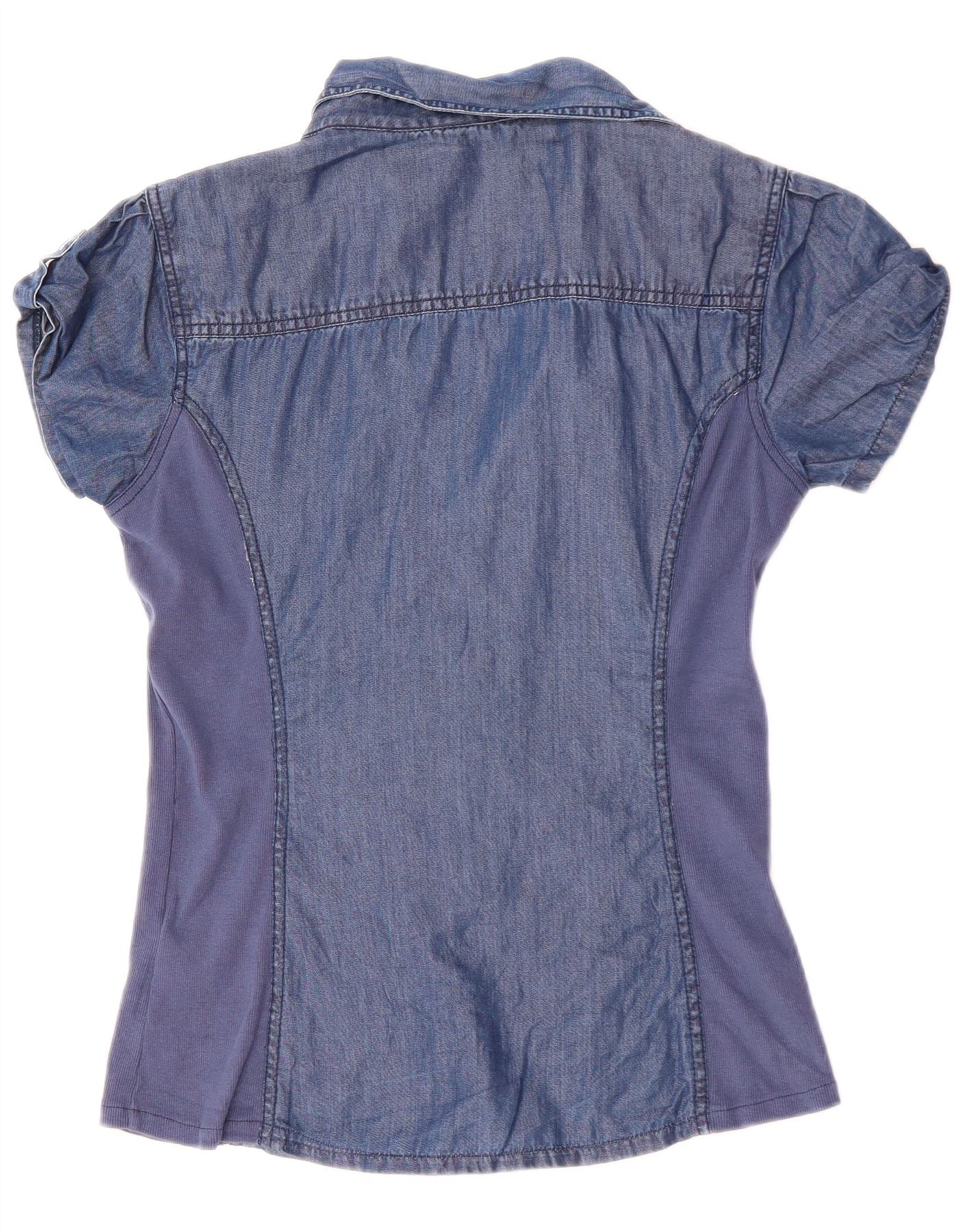 GUESS Женская джинсовая рубашка-блузка с коротким рукавом UK 12 Medium Navy Blue Tencel