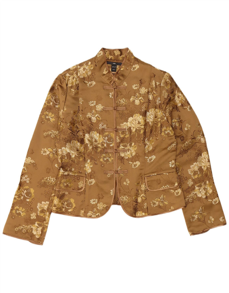 H&M Womens 5 Button Blazer Jacket EU 40 Medium Brown Floral Viscose