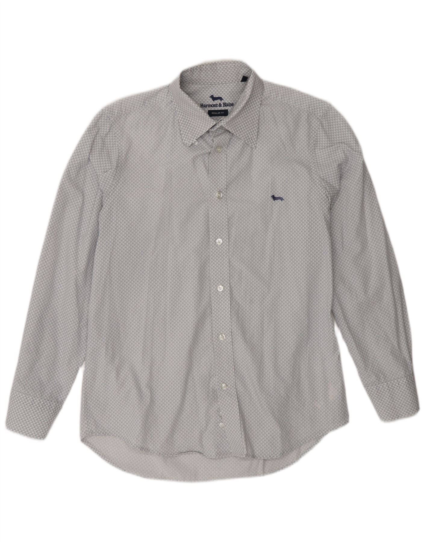 HARMONT & BLAINE Мужская рубашка стандартного кроя среднего размера, белый хлопок с пейсли