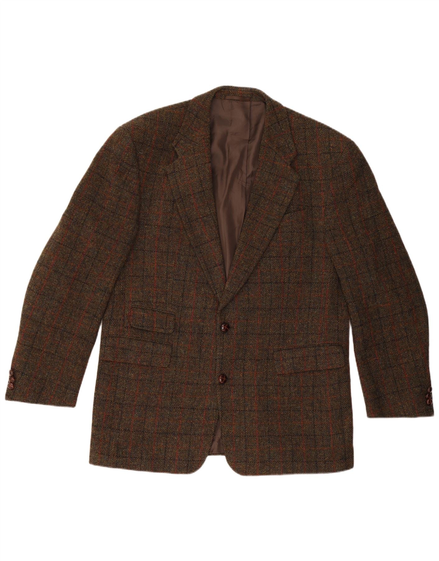 Мужской пиджак HARRIS TWEED на 2 пуговицах IT 54 2XL, коричневый в клетку, новая шерсть