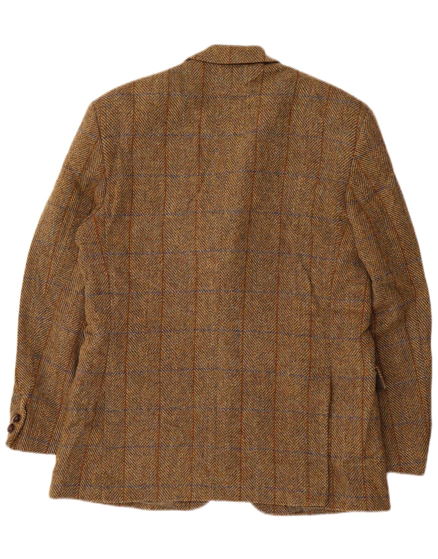 Мужской пиджак HARRIS TWEED на 2 пуговицах, Великобритания 38, средний коричневый с рисунком «елочка»