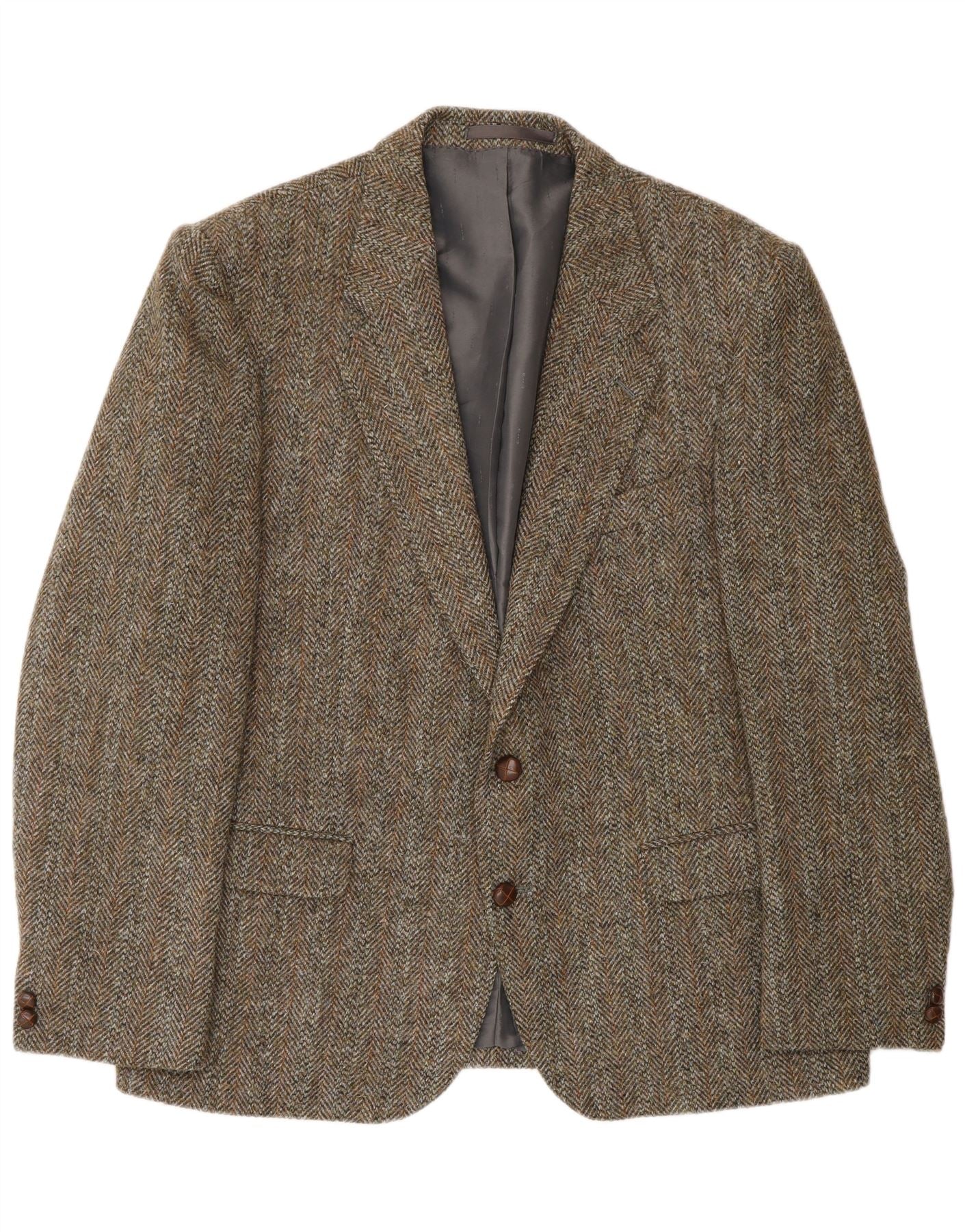 Мужской пиджак HARRIS TWEED на 2 пуговицах, Великобритания, 46, 3XL, зеленый, шерсть с рисунком «елочка»