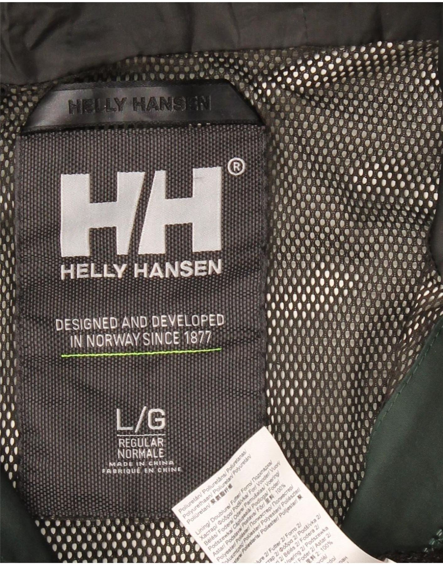 HELLY HANSEN Mens Hooded Rain Jacket UK 40 Large Green Polyester