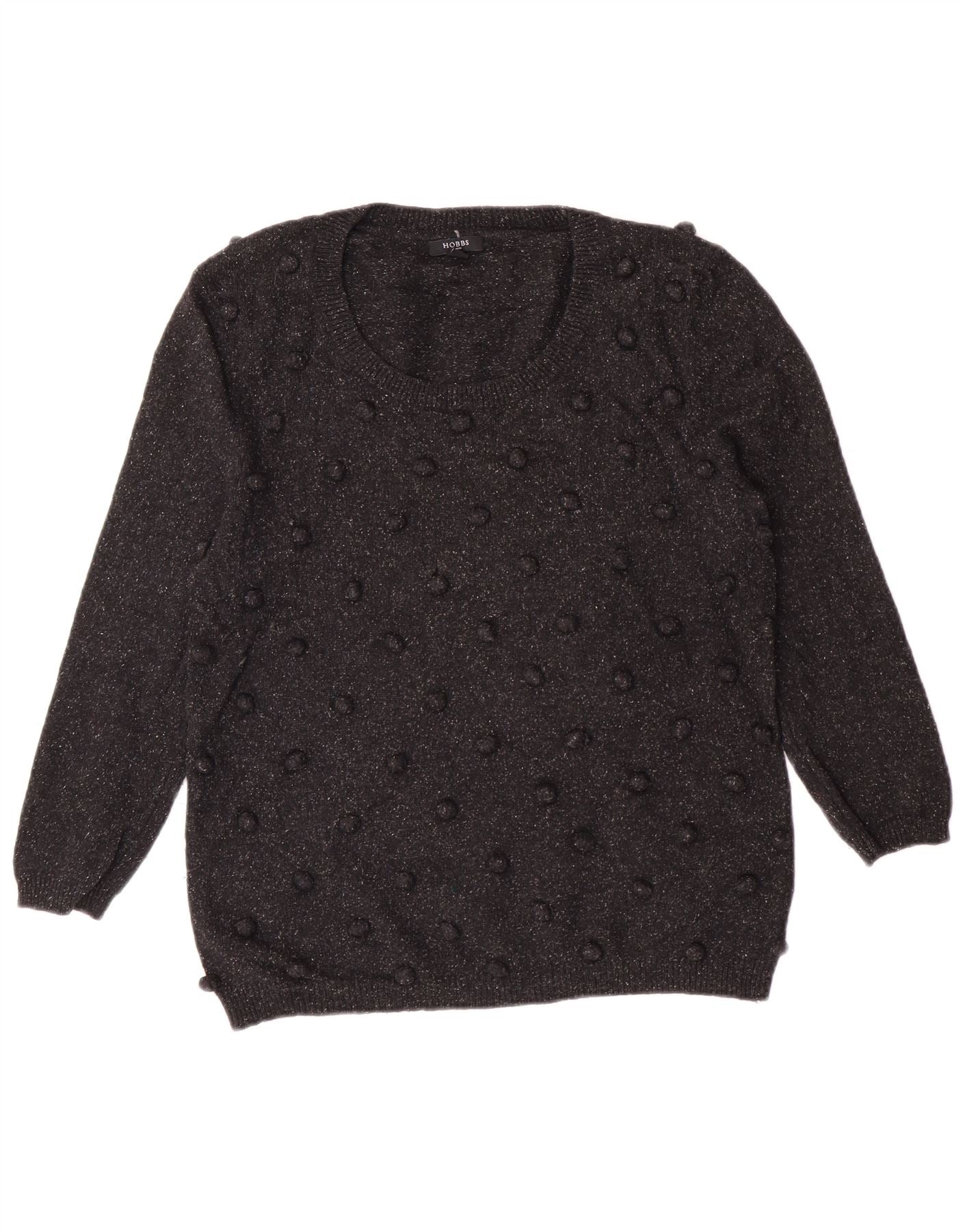 Женский джемпер с вырезом «лодочка» Hobbs UK 14, классический черный шерстяной свитер среднего размера