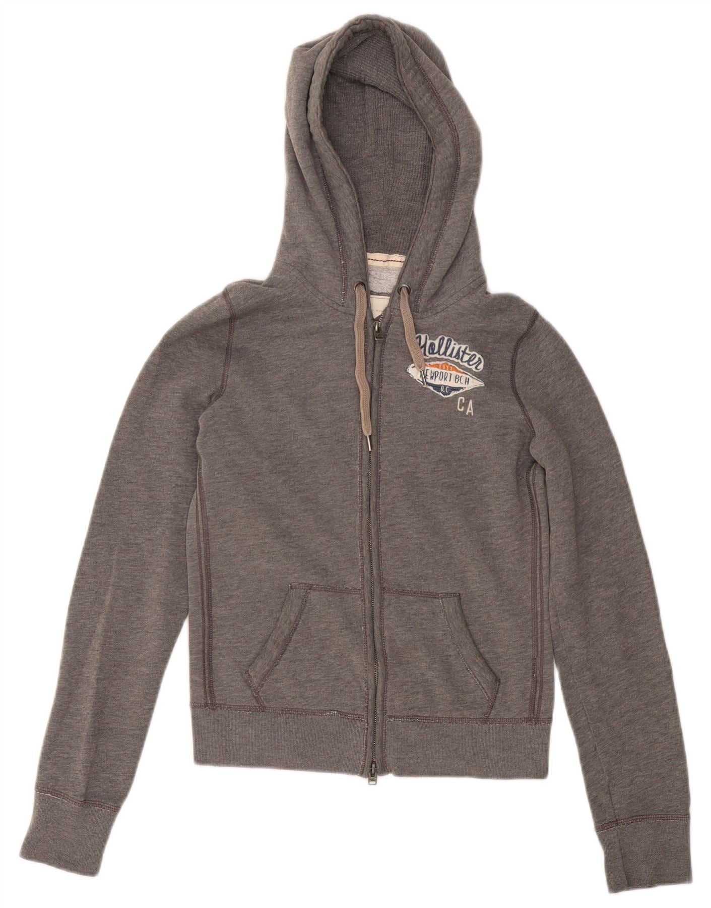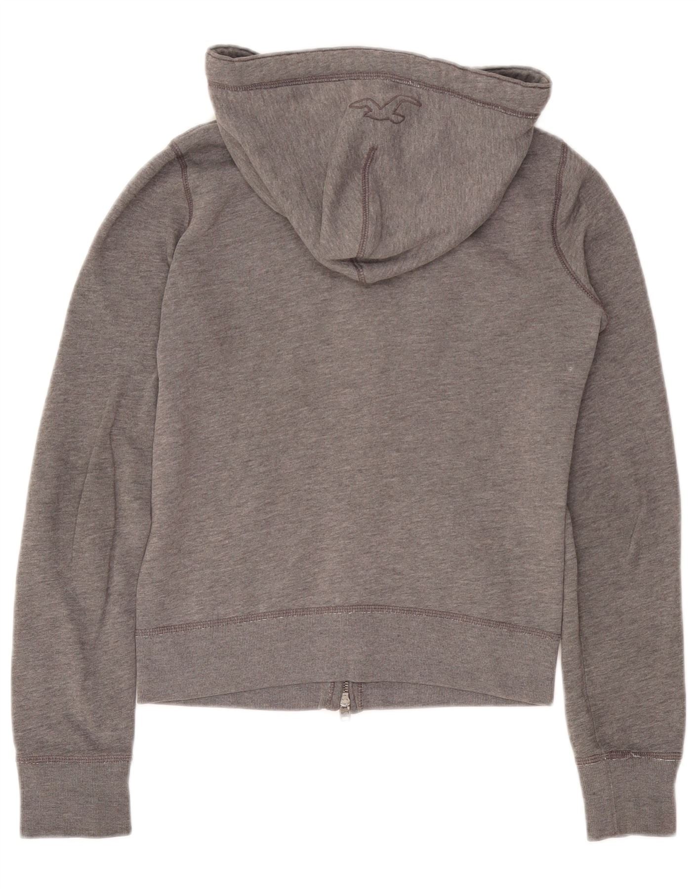 HOLLISTER Женский свитер с капюшоном на молнии с графическим рисунком UK 10, маленький серый хлопок